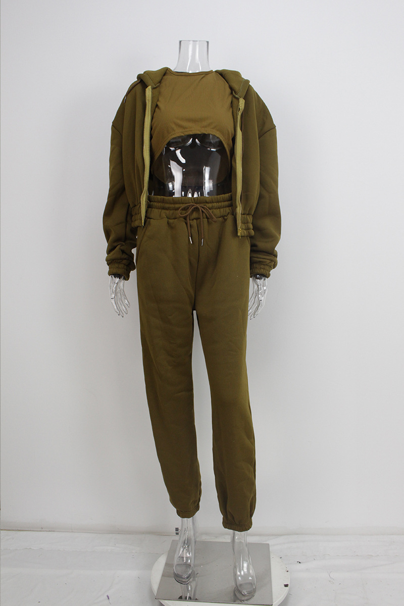 아마존 유럽과 미국 의류 3피스 바지 플러스 벨벳 후드 스웨트셔츠 스포츠 패션 캐주얼 겨울 의류 세트