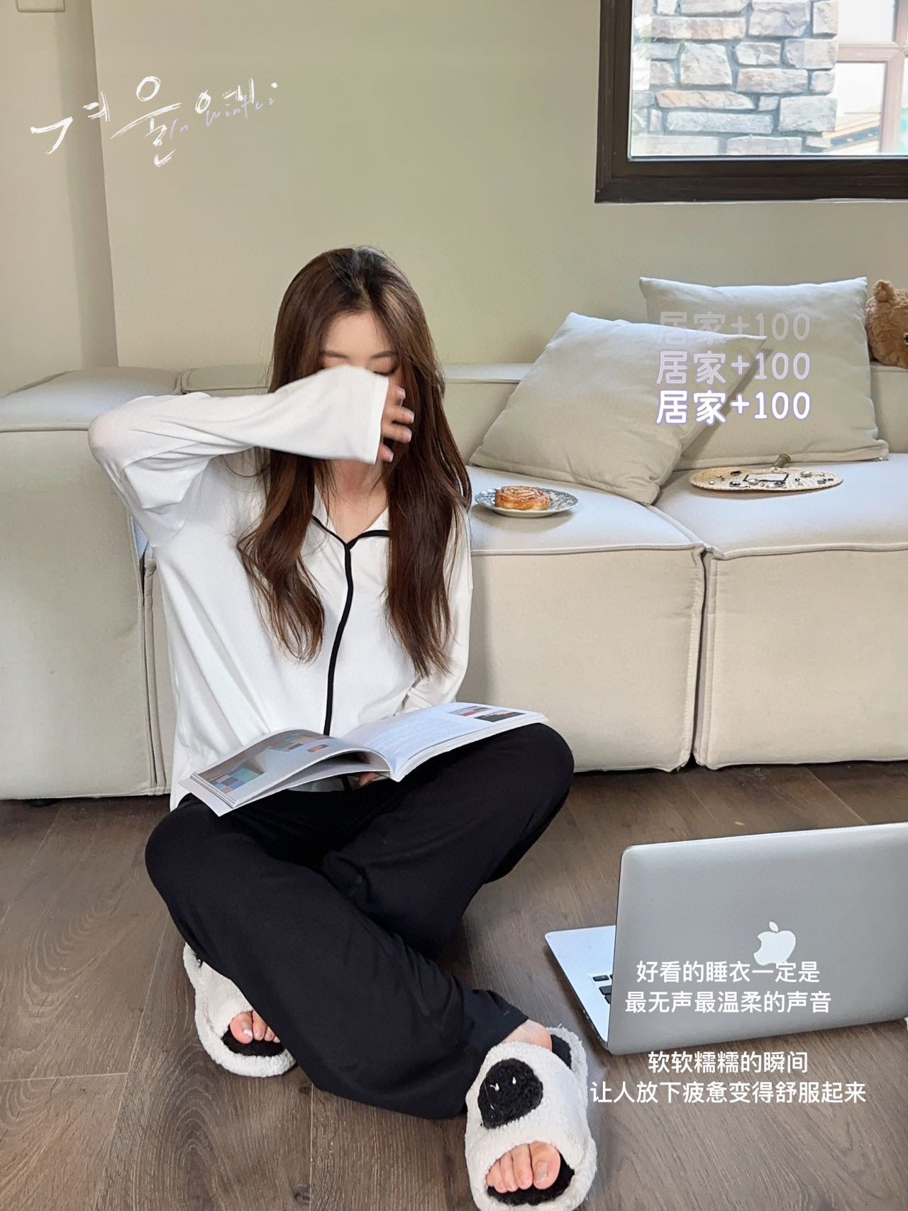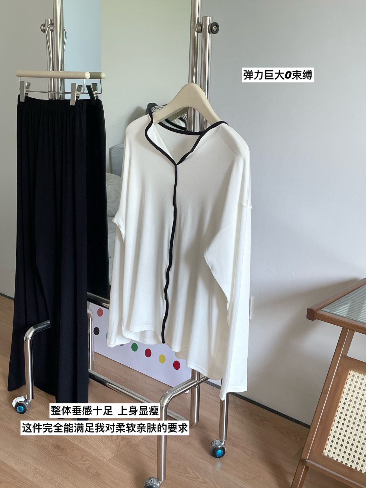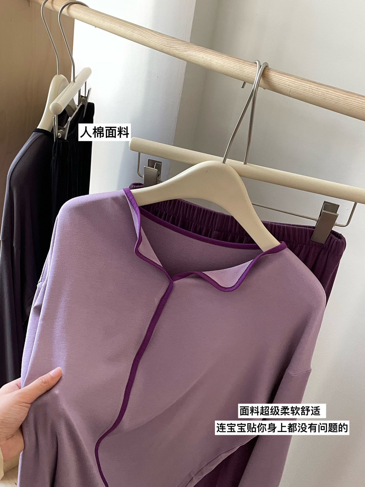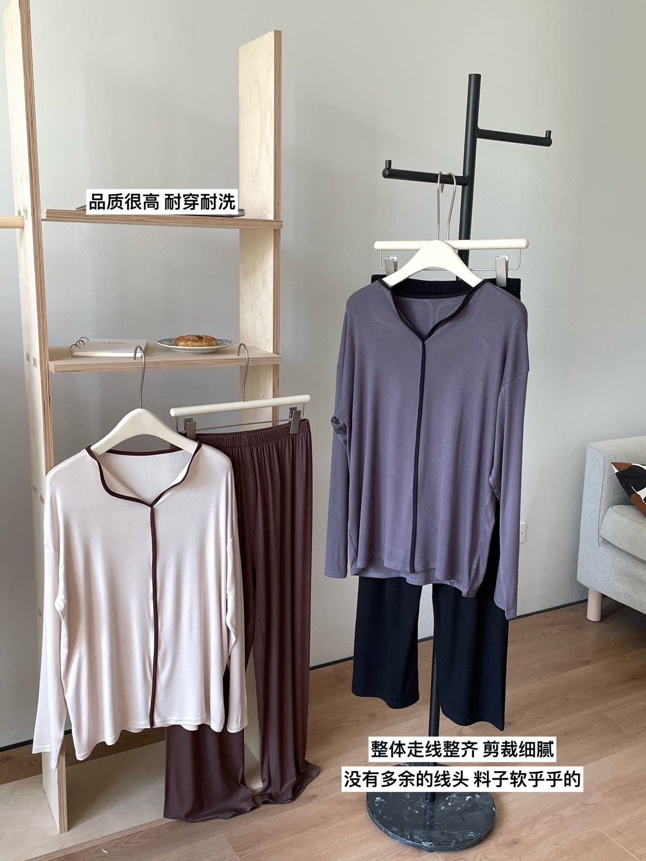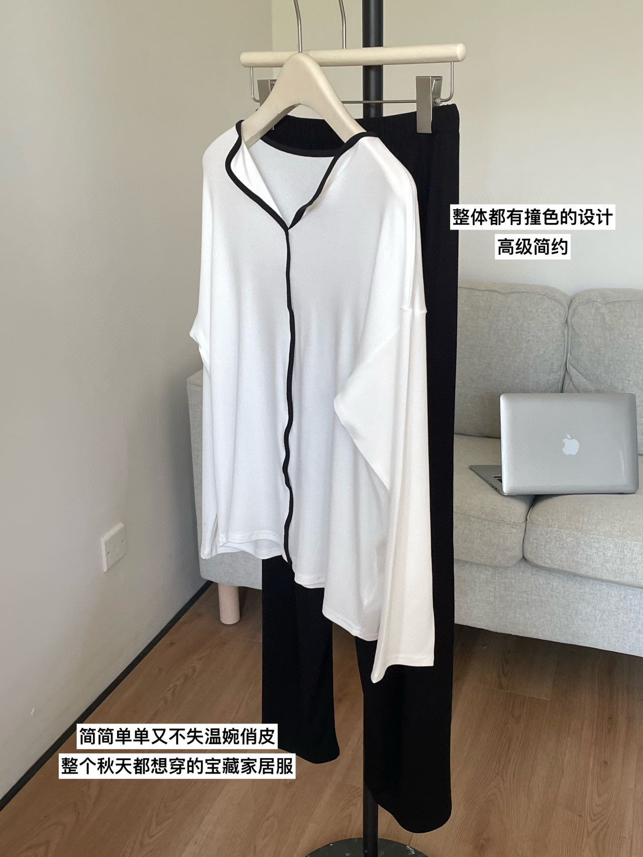 동대문 8825 미니멀리스트 잠옷 홈웨어 긴팔 긴바지 배색 스티치 2025 초가을 신상 여성 투피스 세트스토어 가기