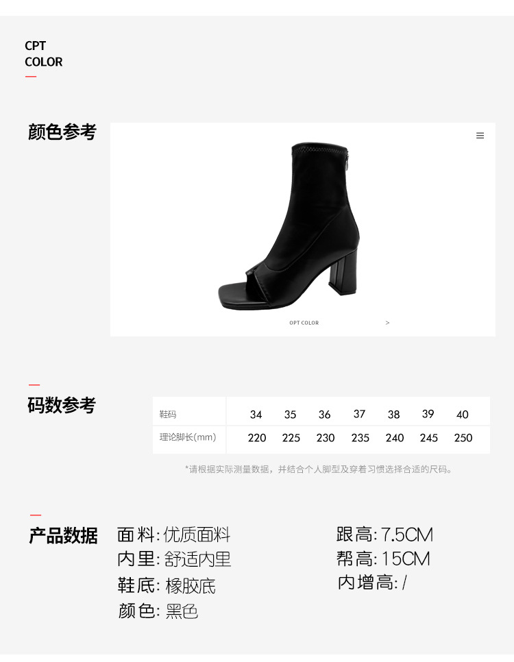 하이힐 앵클 부츠 여성용 2023 가을 겨울 신상품 클립 발가락 통기성 탄성 슬리브 물고기 부리 두꺼운 굽 여성용 슬림 룩 부츠스토어 가기