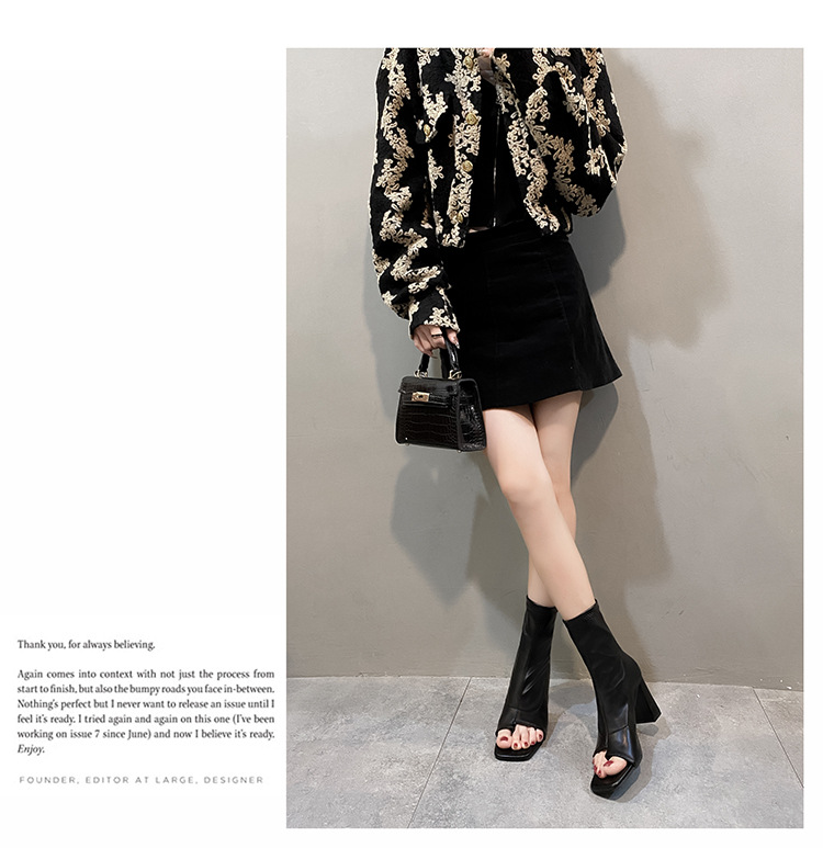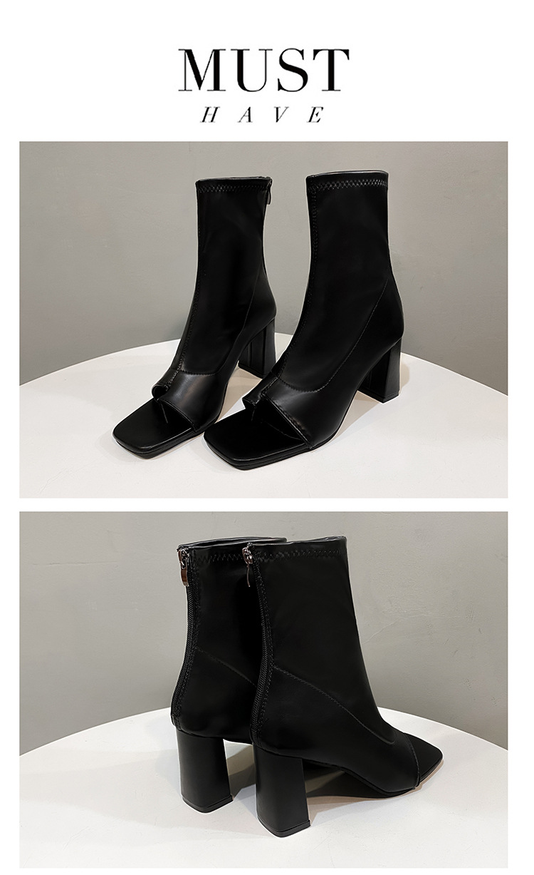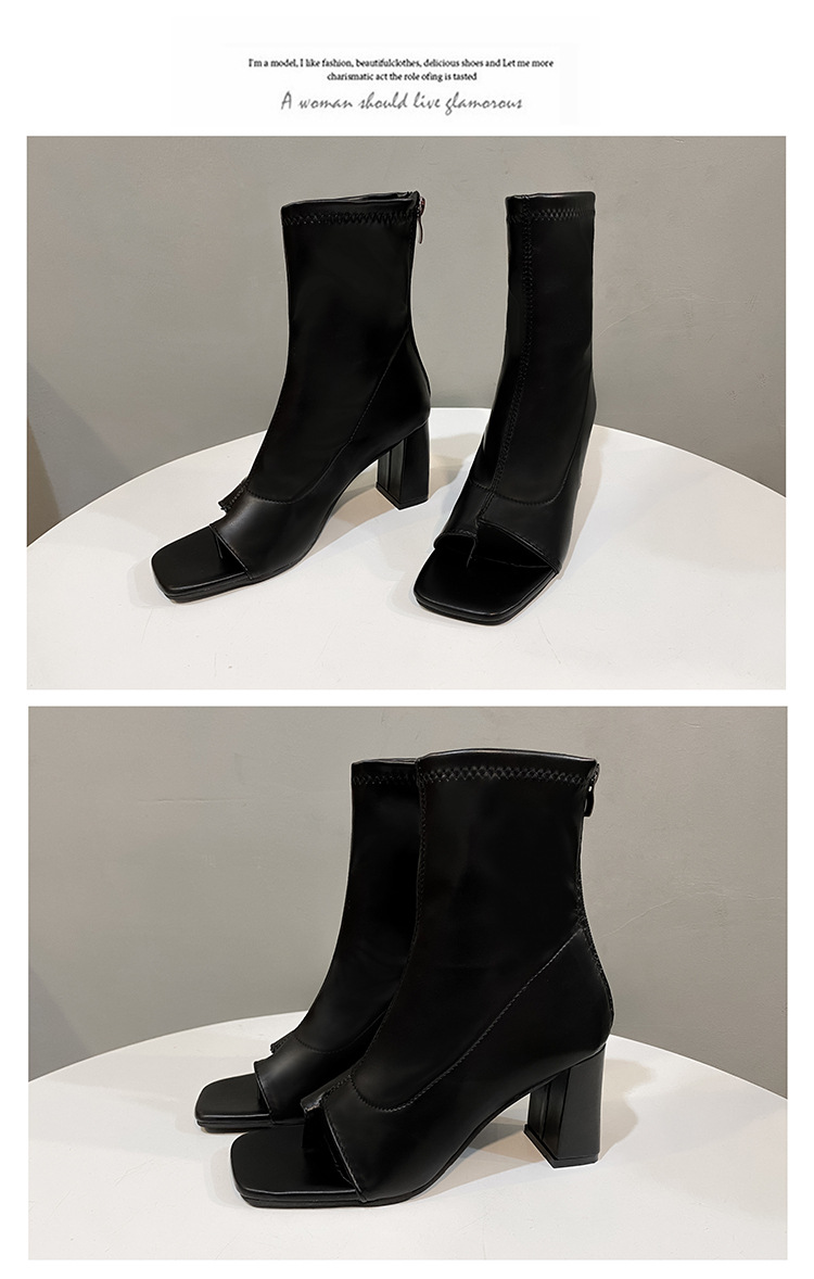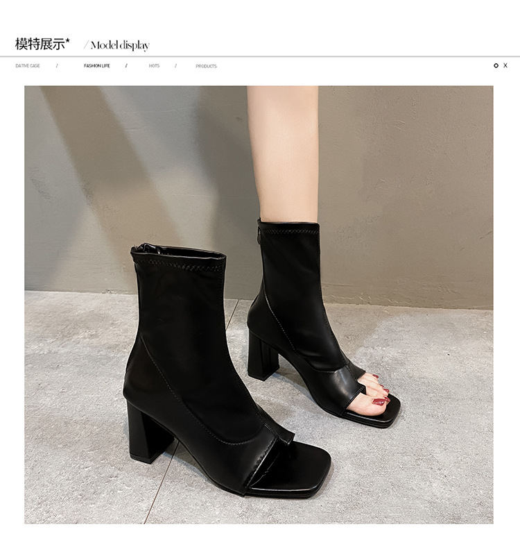 하이힐 앵클 부츠 여성용 2023 가을 겨울 신상품 클립 발가락 통기성 탄성 슬리브 물고기 부리 두꺼운 굽 여성용 슬림 룩 부츠