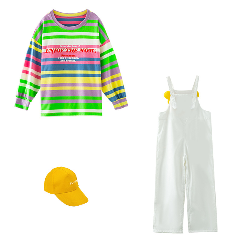 • A352 긴소매 셔츠 + B253 긴벨트 팬츠 + 노랑 레터 캡