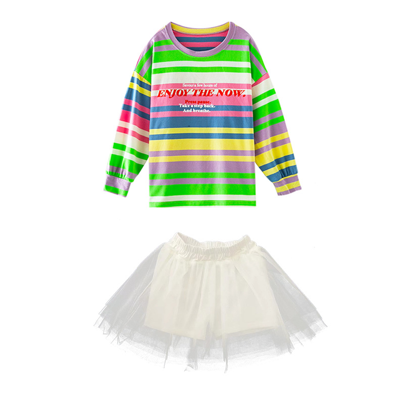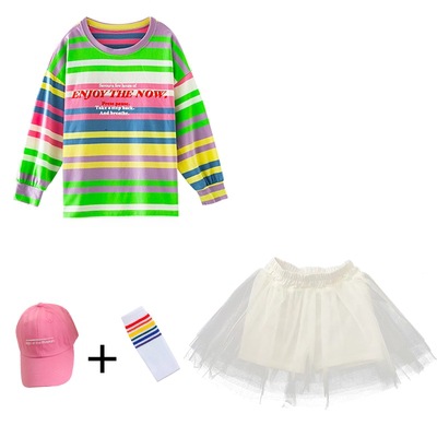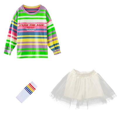 • A352 긴팔 셔츠 + B223 화이트 거즈 스커트 + 레인보우 양말