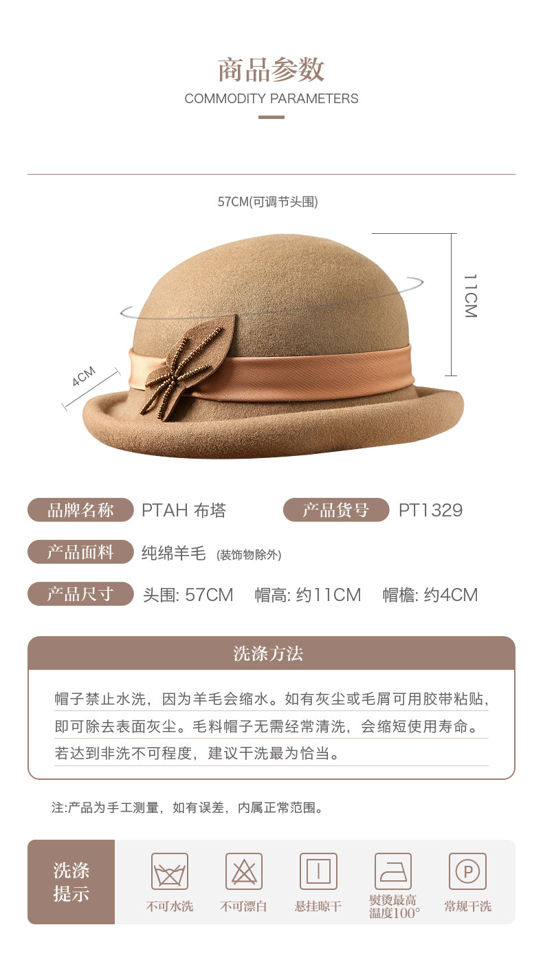 가을과 겨울 모자 어린이 프랑스 복고풍 울 탑 모자 컬링 펠트 모자 패션 분지 모자 따뜻한 얼굴 작은 PT1329스토어 가기