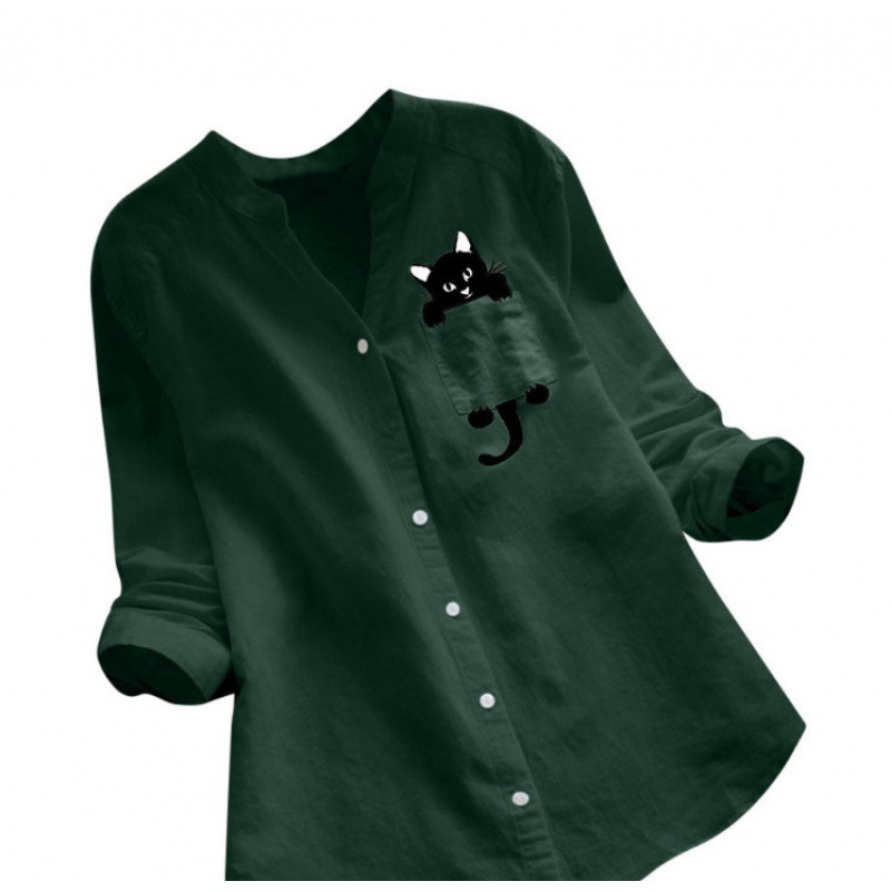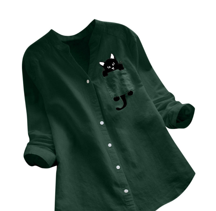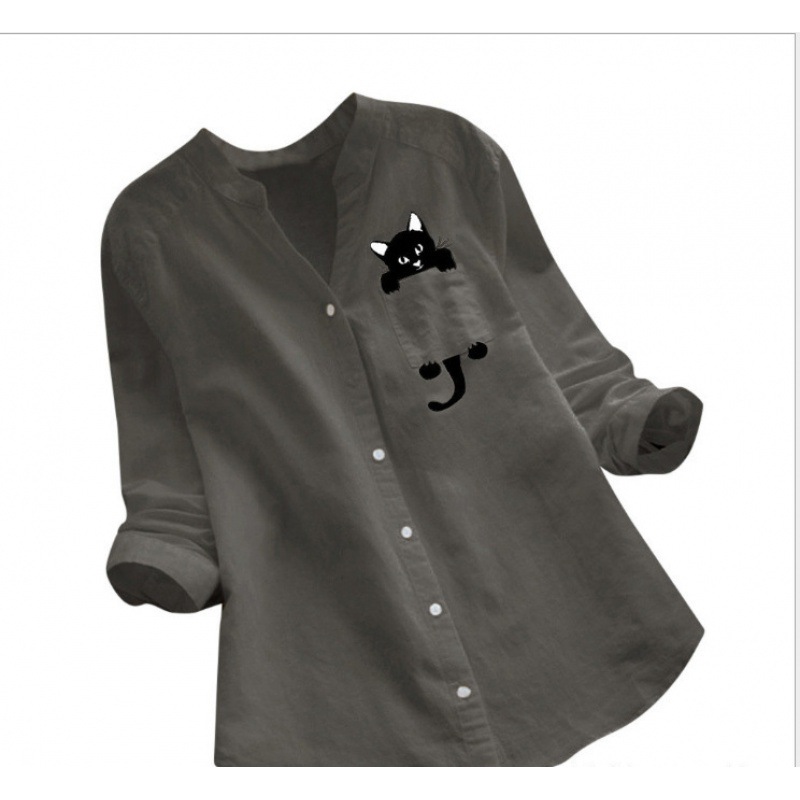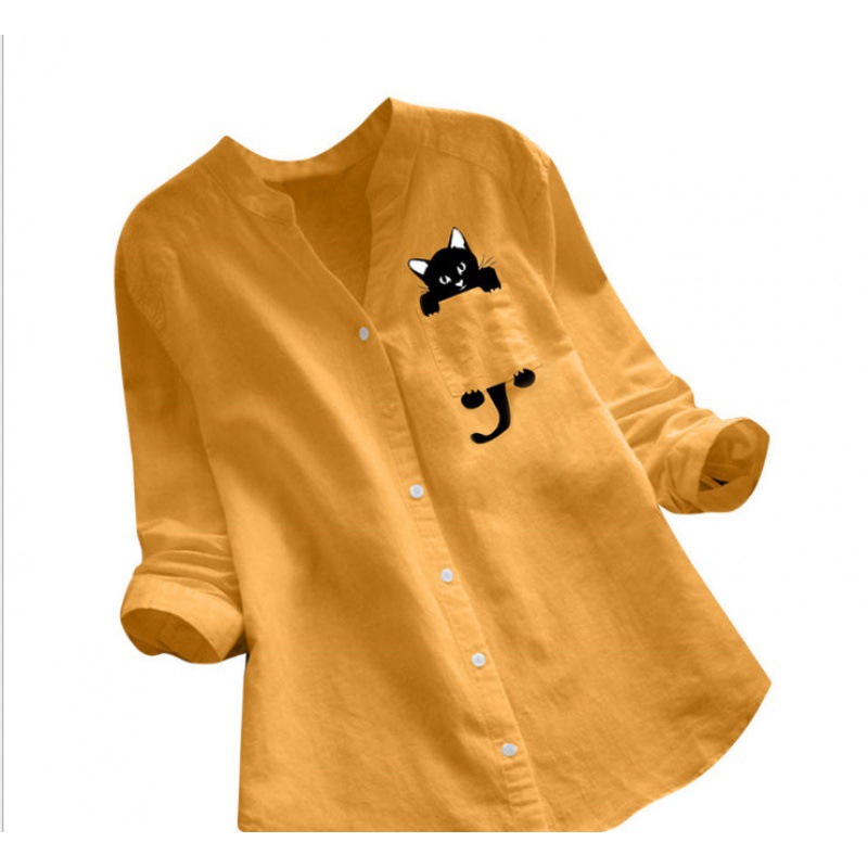 2021 폭발 여자의 최고 아마존 새로운 면 린넨 프린트 긴 소매 플러스 사이즈 캐주얼 느슨한 셔츠스토어 가기