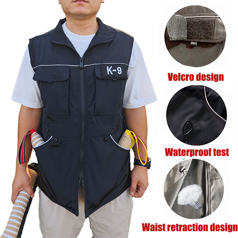 독일 셰퍼드 개 트레이너 K9 조끼 작업 개 안티 스크래치 의류 대형 포켓 방수 머리없는 개 훈련 장비