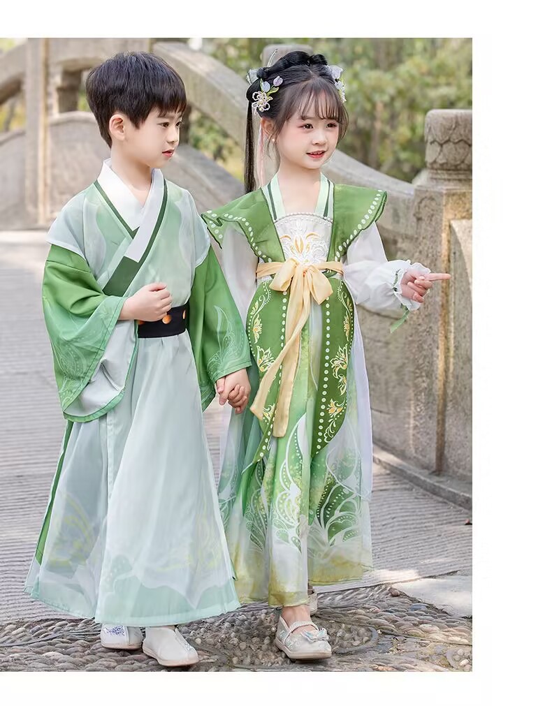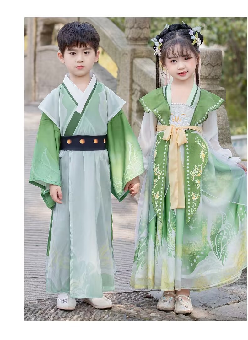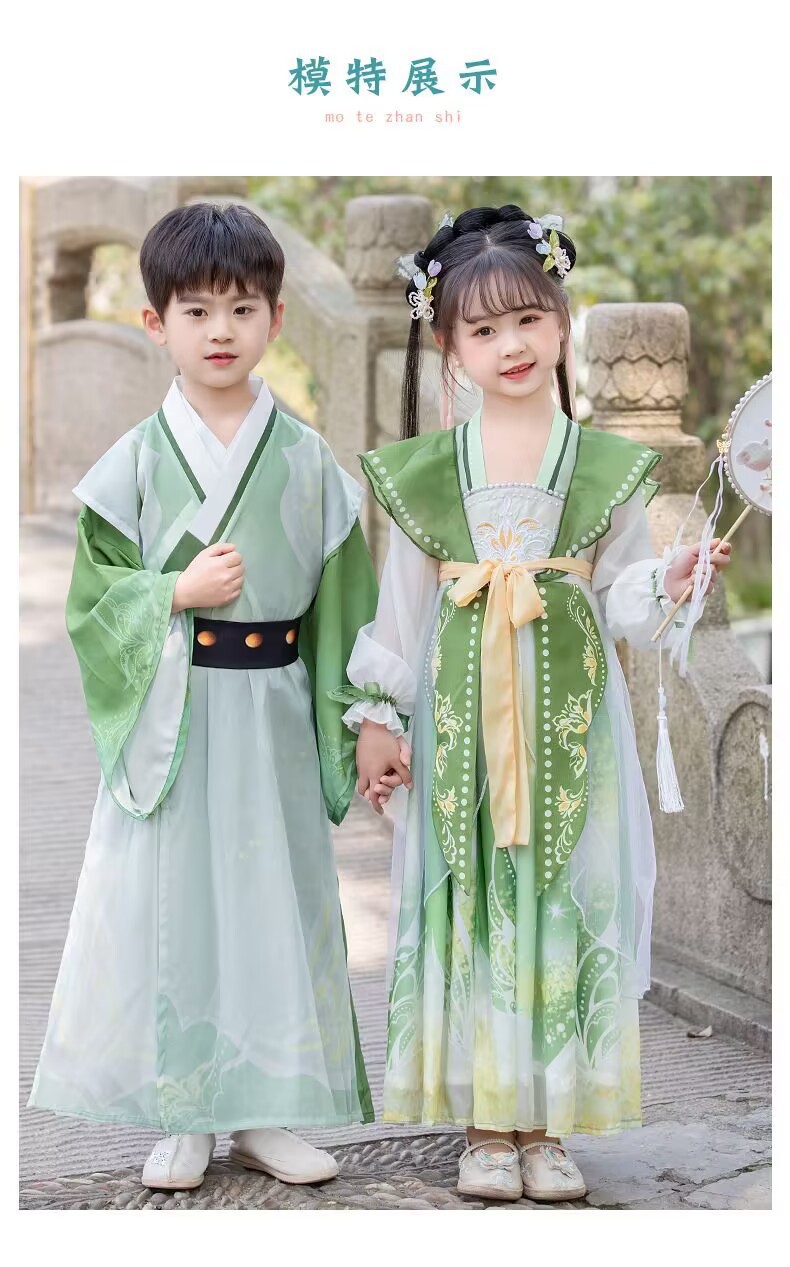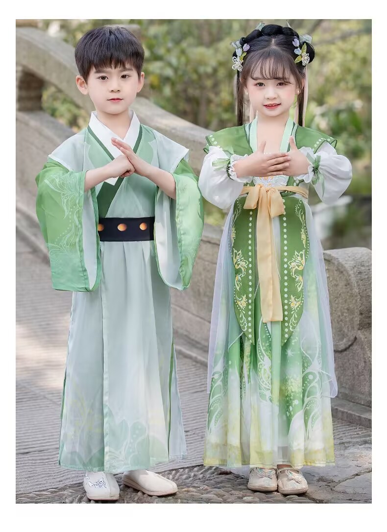 Hanfu 소년과 소녀 가을 2023 새로운 남성과 어린이의 고대 세트 중국 연구 세트 당나라 세트 중간 가을 축제 공연 세트 가을