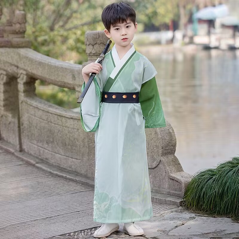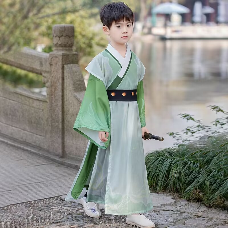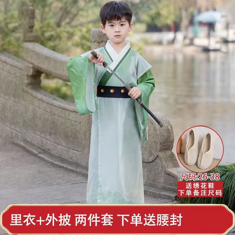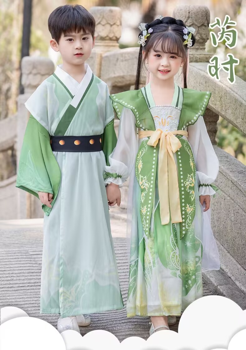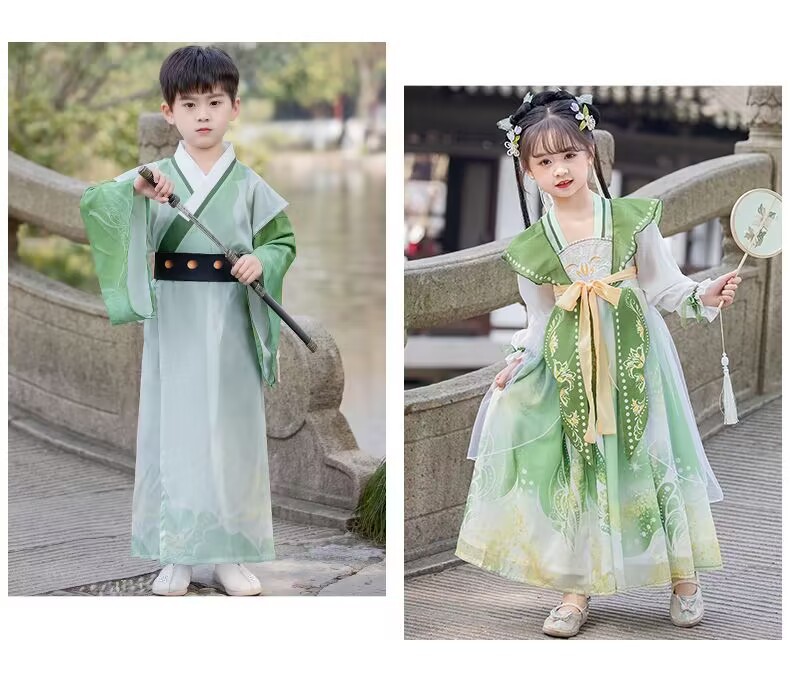 Hanfu 소년과 소녀 가을 2023 새로운 남성과 어린이의 고대 세트 중국 연구 세트 당나라 세트 중간 가을 축제 공연 세트 가을