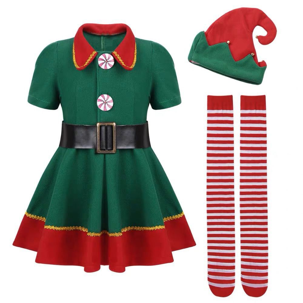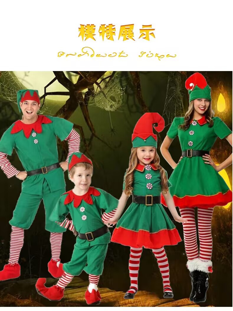 크리스마스 의상 어린이 크리스마스 엘프 코스프레 의상 남녀 어린이 성인 녹색 엘프 크리스마스 파티 의상