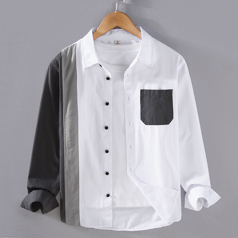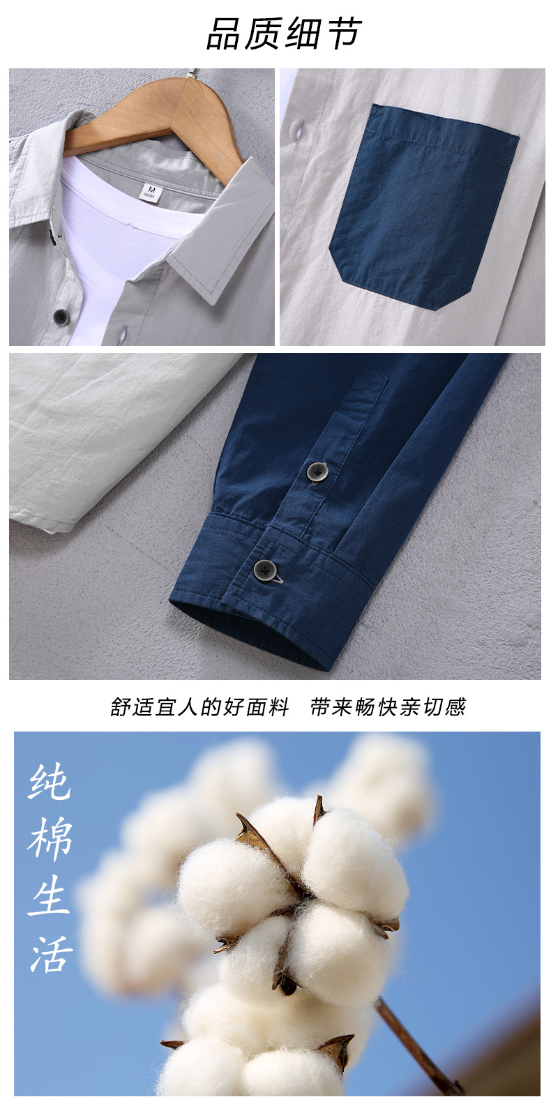 2304 일본 긴팔 셔츠 남성 가을 순수한면 스티칭 컬러 디자인 유행 최고 청소년 느슨한 셔츠스토어 가기