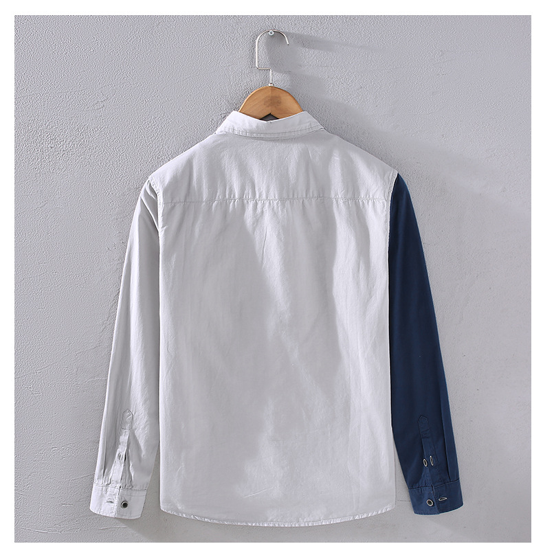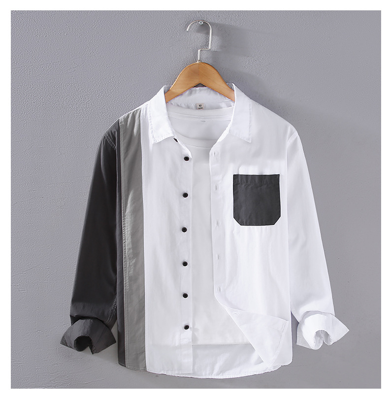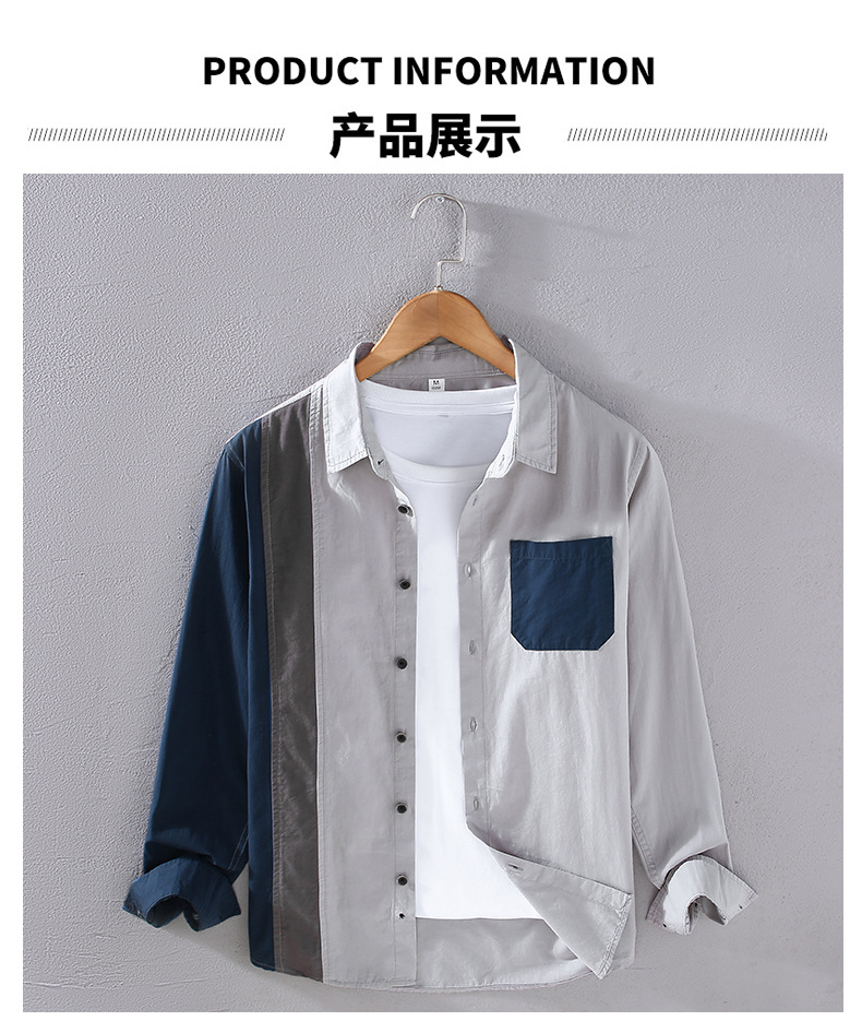 2304 일본 긴팔 셔츠 남성 가을 순수한면 스티칭 컬러 디자인 유행 최고 청소년 느슨한 셔츠
