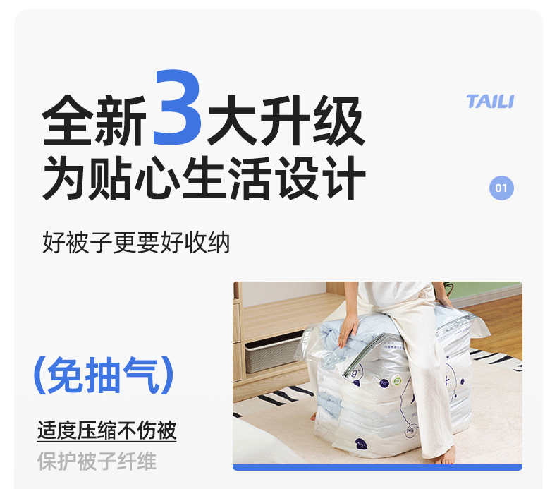 Taili 항균 진공 압축 가방 의류 퀼트 저장 가방 여행 가정용 두꺼운 3 차원 대형 가방