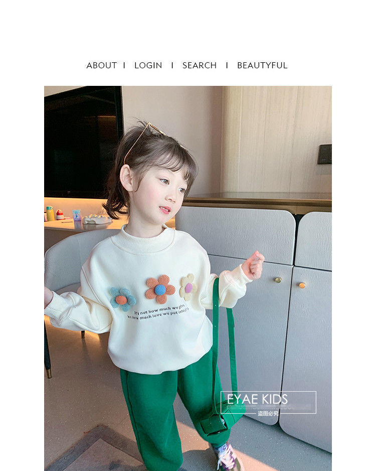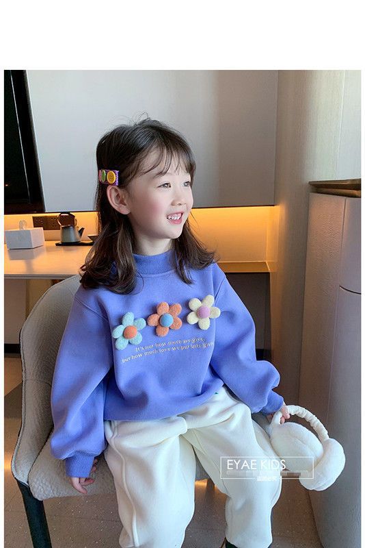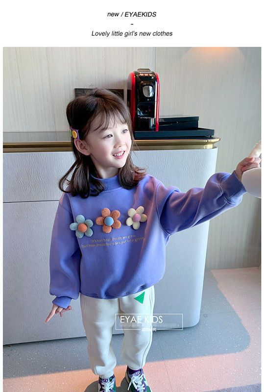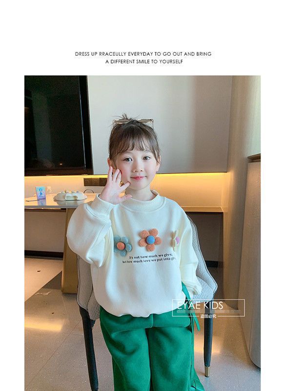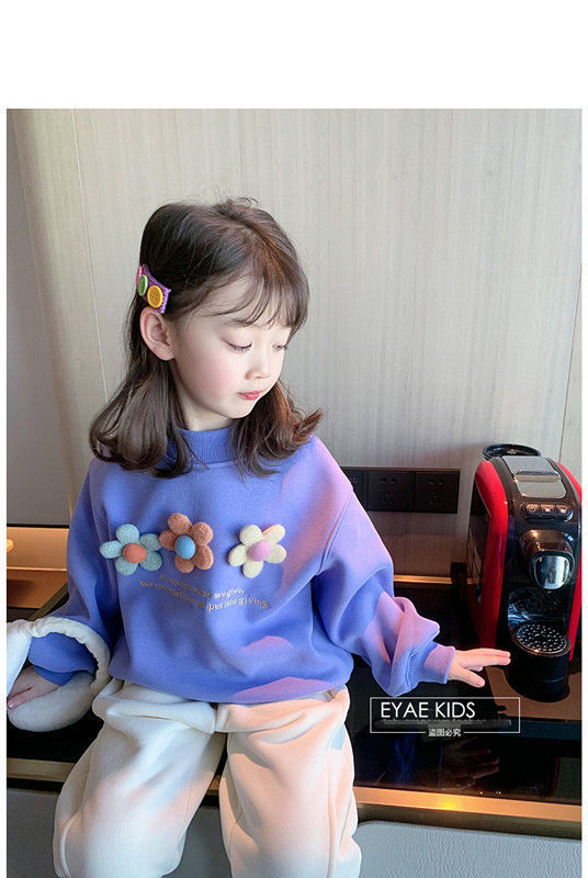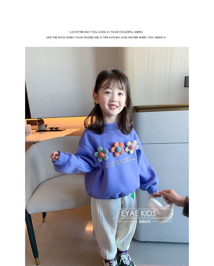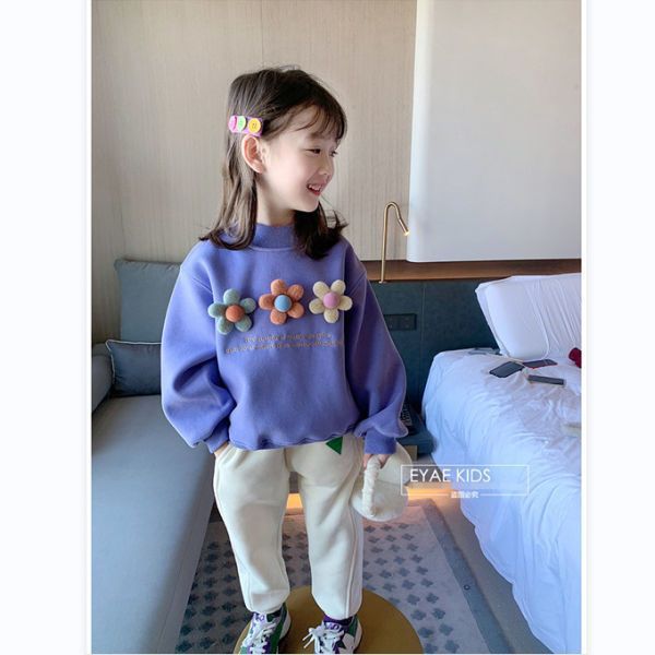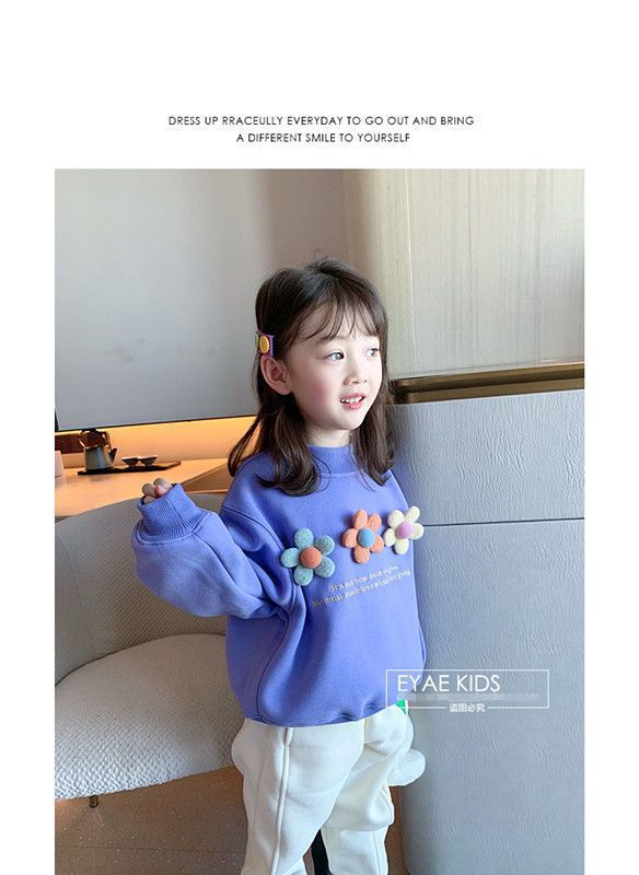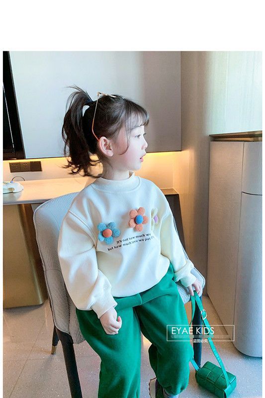 2023 봄과 가을 새로운 아기 소녀 스웨터 웨스턴 스타일 패션 모든 매치 스웨터 어린이를위한 입체 꽃 긴 소매 탑스토어 가기