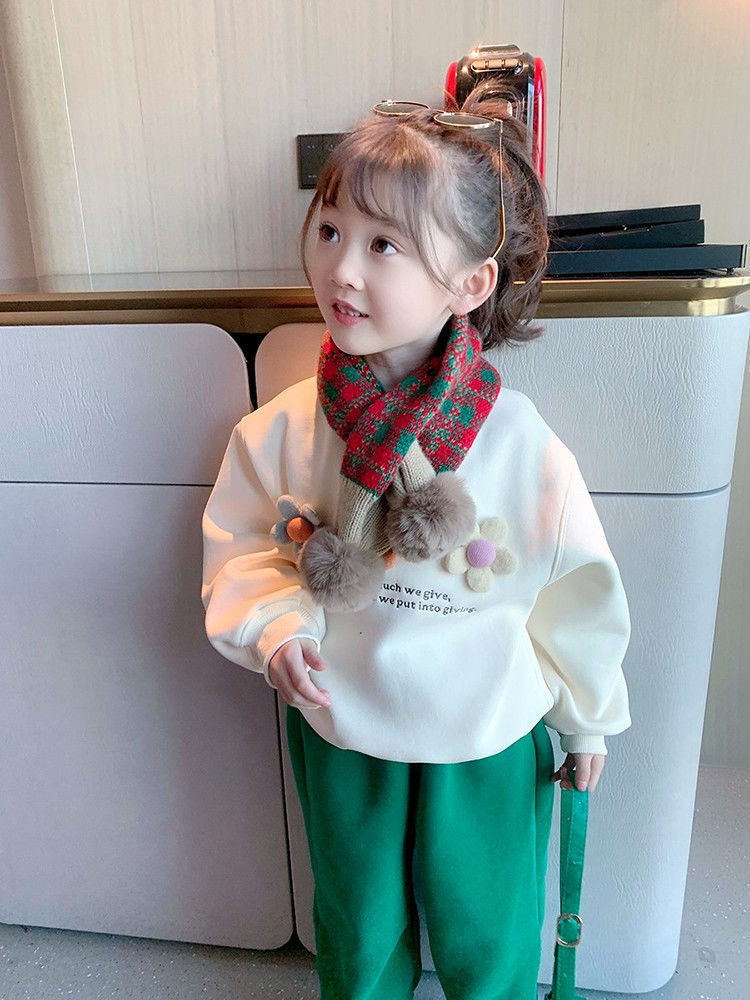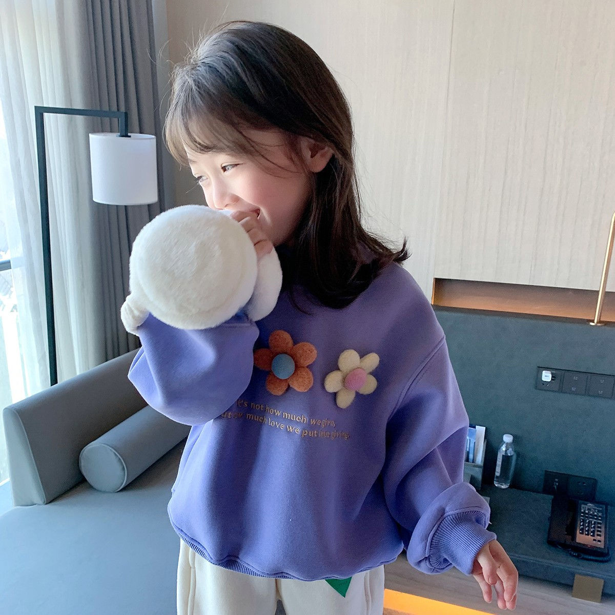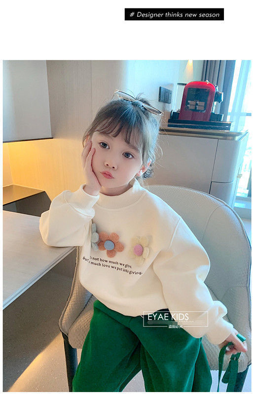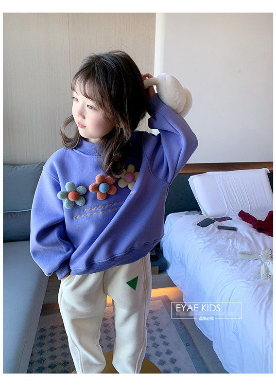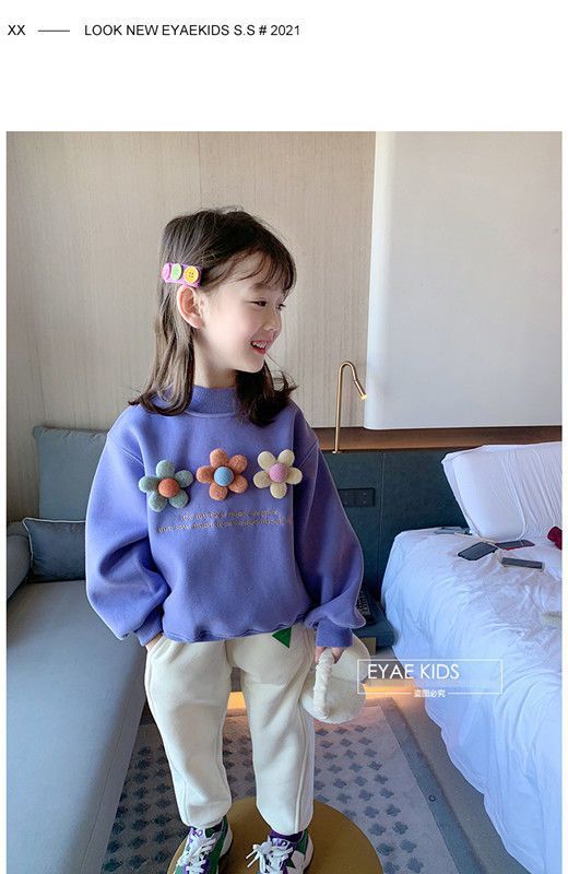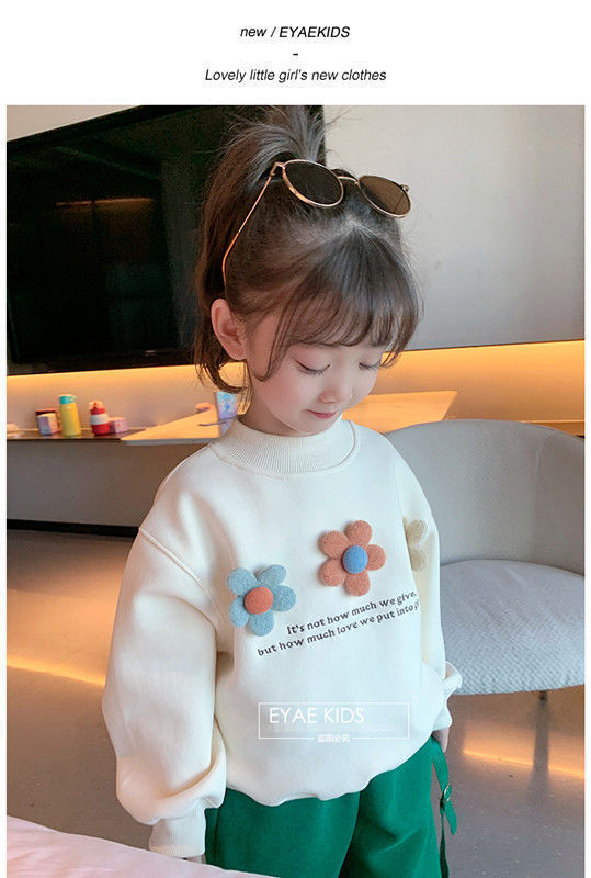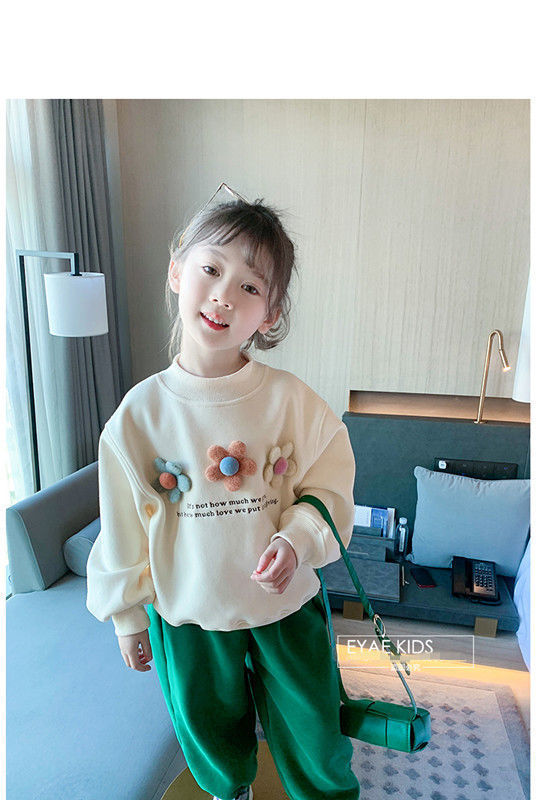 2023 봄과 가을 새로운 아기 소녀 스웨터 웨스턴 스타일 패션 모든 매치 스웨터 어린이를위한 입체 꽃 긴 소매 탑스토어 가기