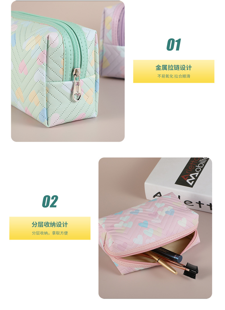 인 스타일 러브 그라디언트 PVC 화장품 가방 하이 컬러 가치 달콤한 스타일 마카롱 컬러 매칭 러브 대비 컬러 클러치 백