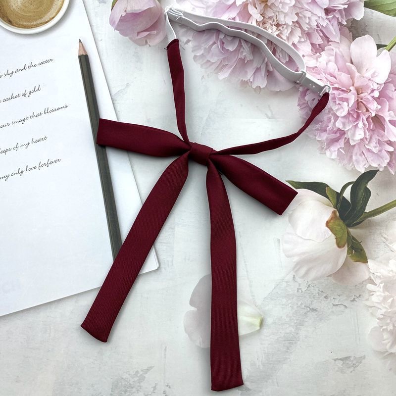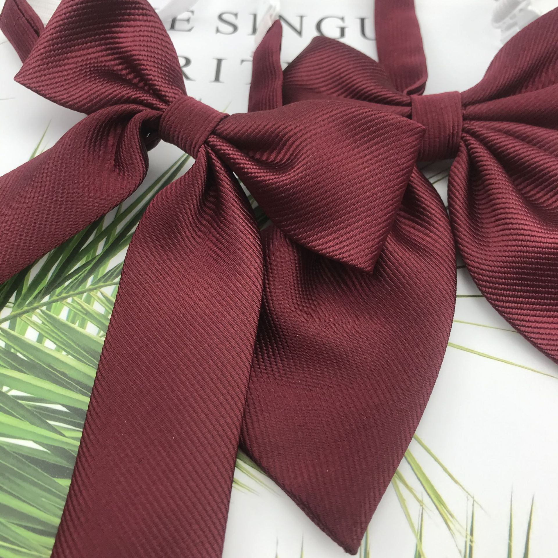 Jk 나비 넥타이 여자의 능직 깃털 활 일본식 셔츠 유니폼 대학 스타일 단색 리본 버건디 블랙 칼라스토어 가기