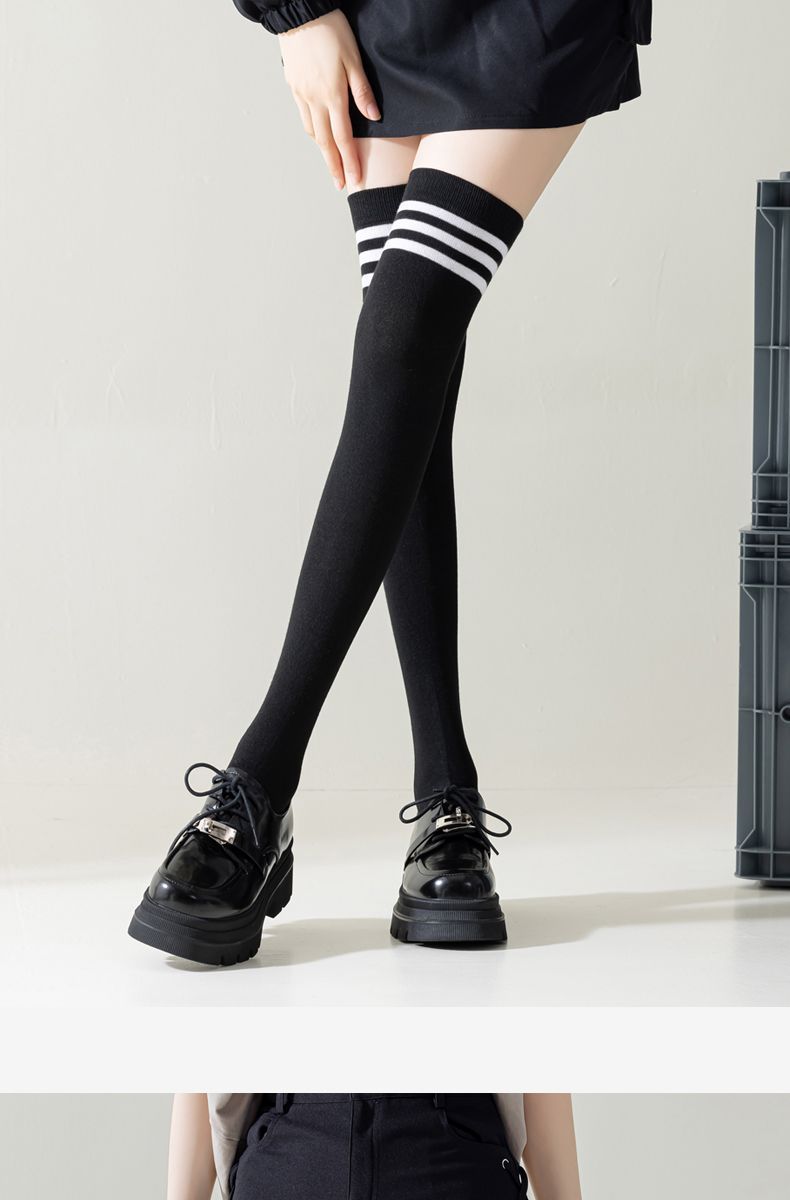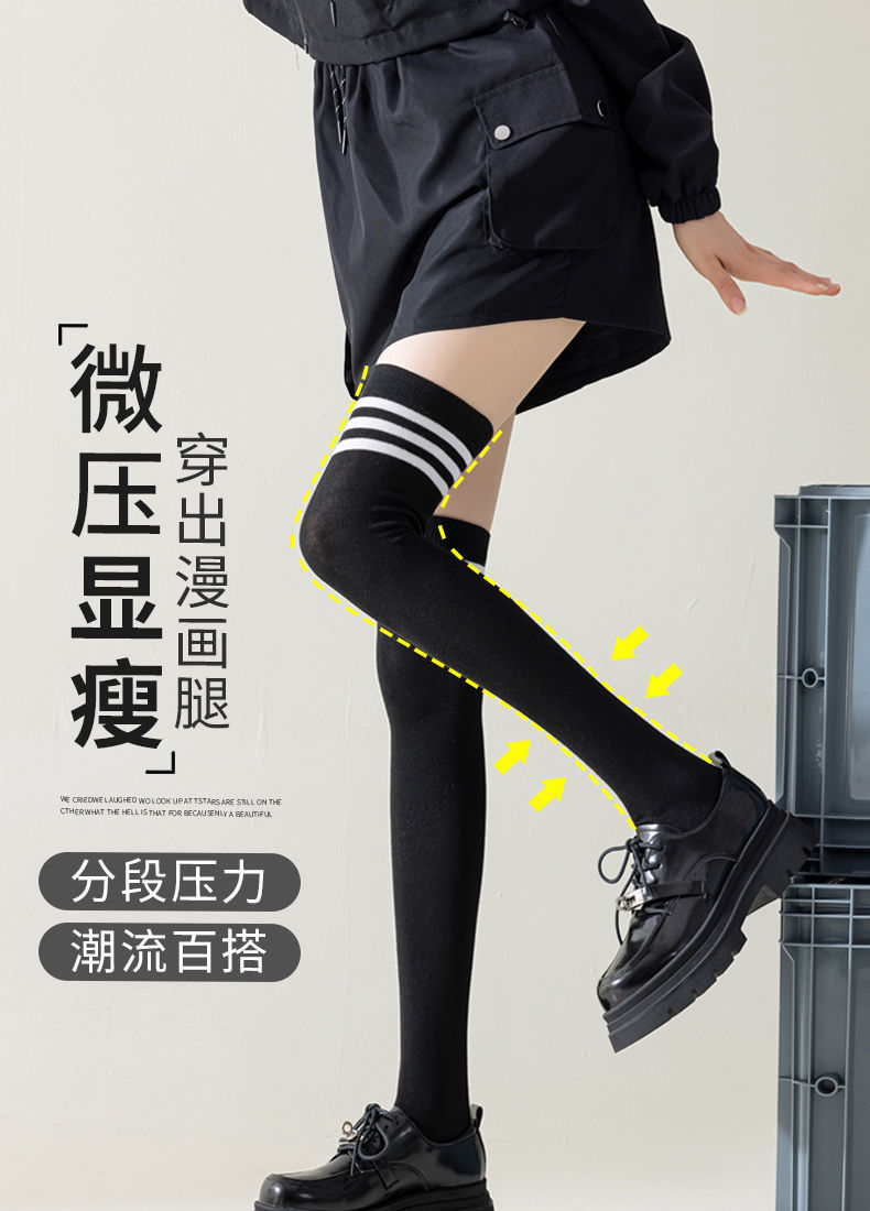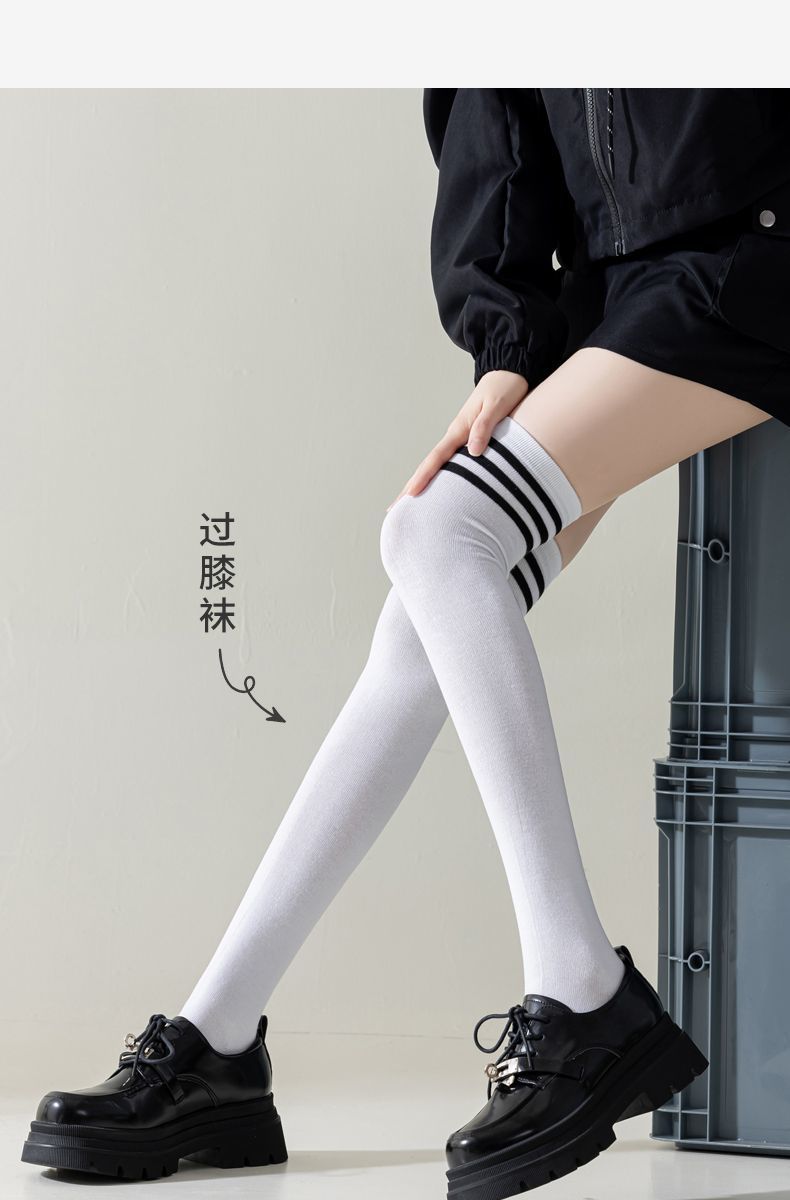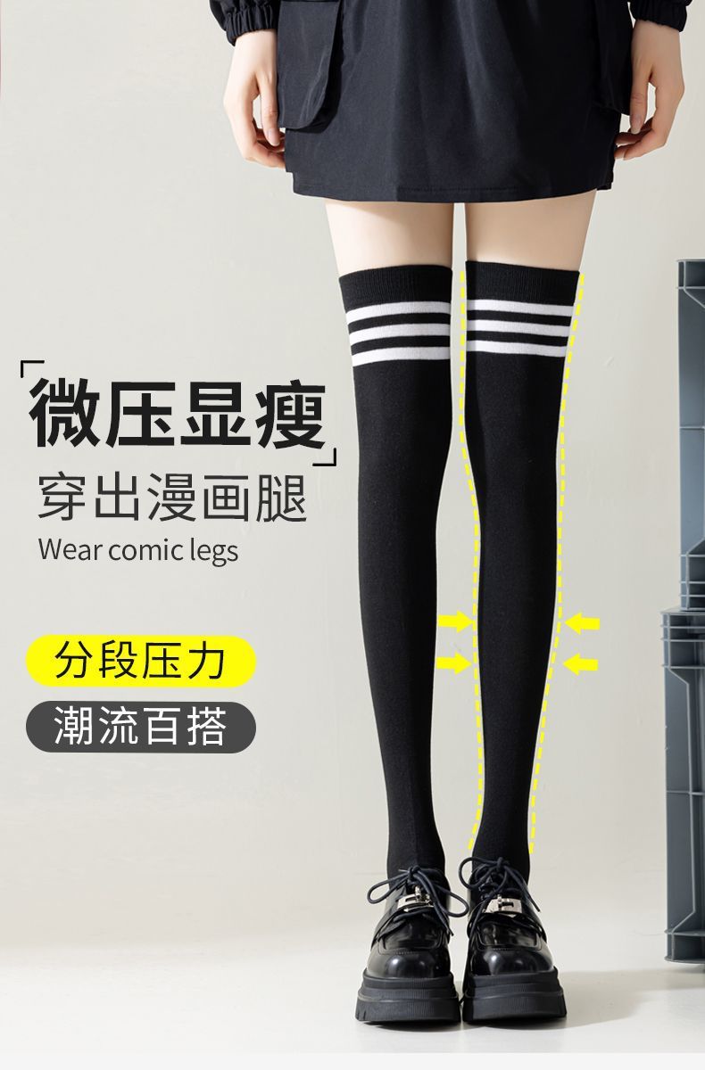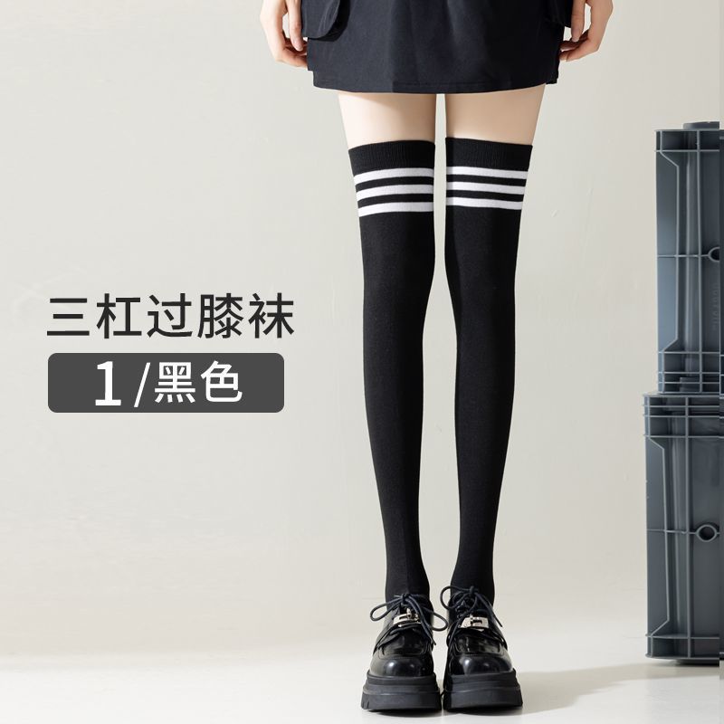 스타킹 여성 단색 흑백 봄과 가을 높은 커프 양말 무릎 양말 약간 누름 스키니 다리 양말 다목적 패션스토어 가기