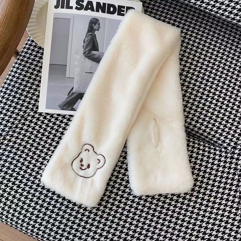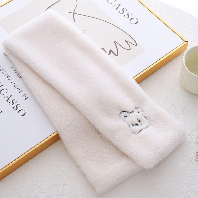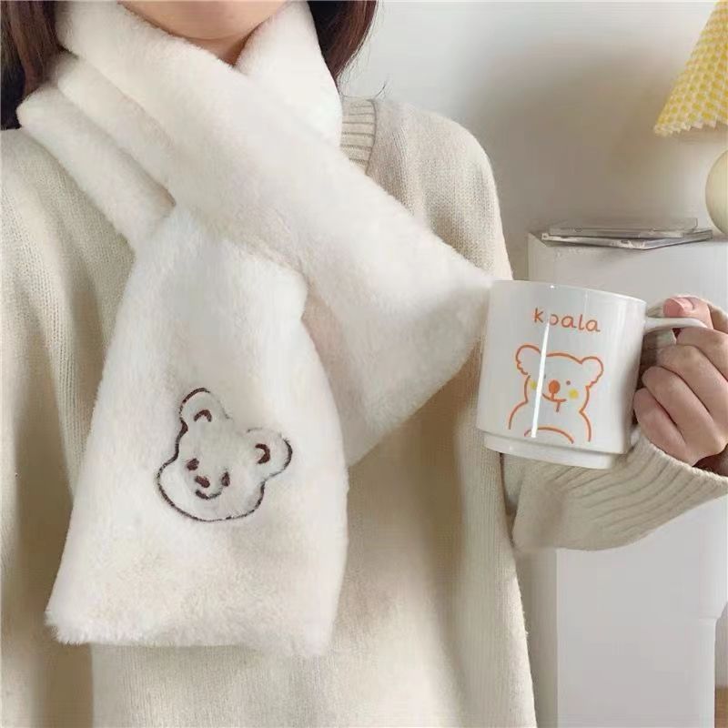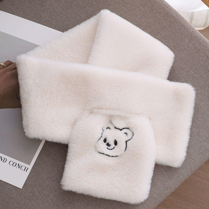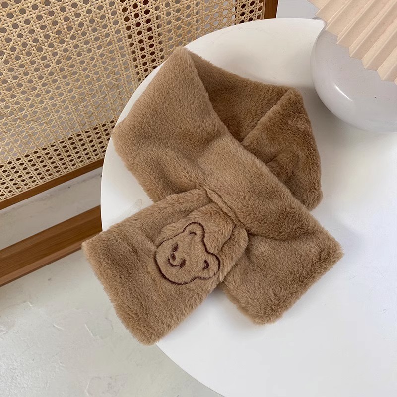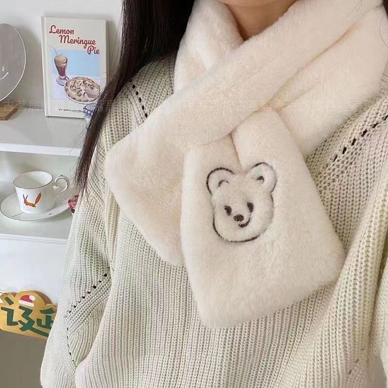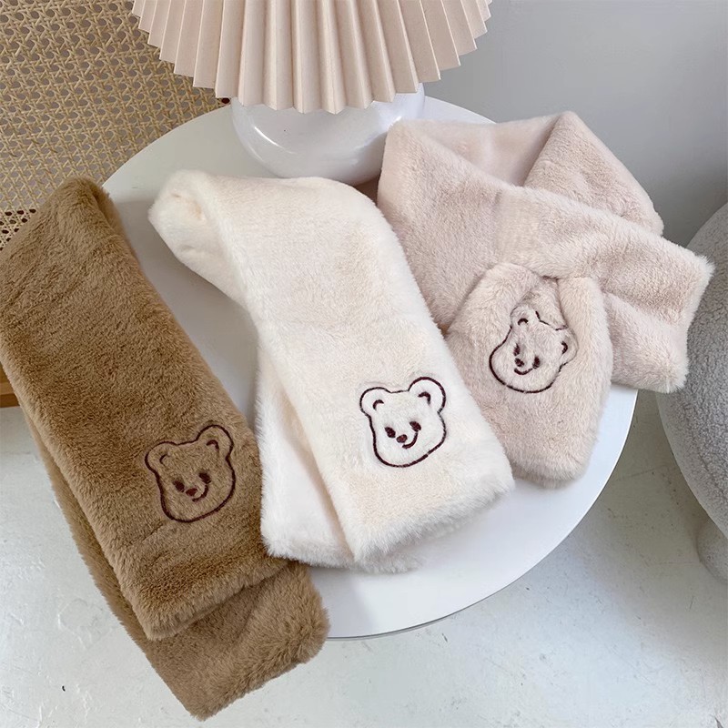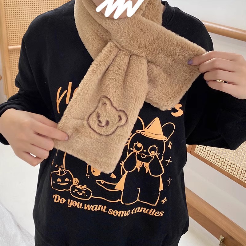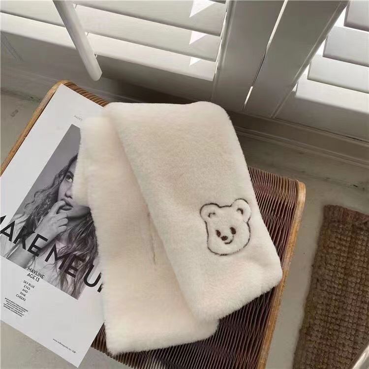 한국 귀여운 곰 머리 스카프 유행 올 매치 학생 소녀 플러시 두꺼운 따뜻한 크로스 스카프