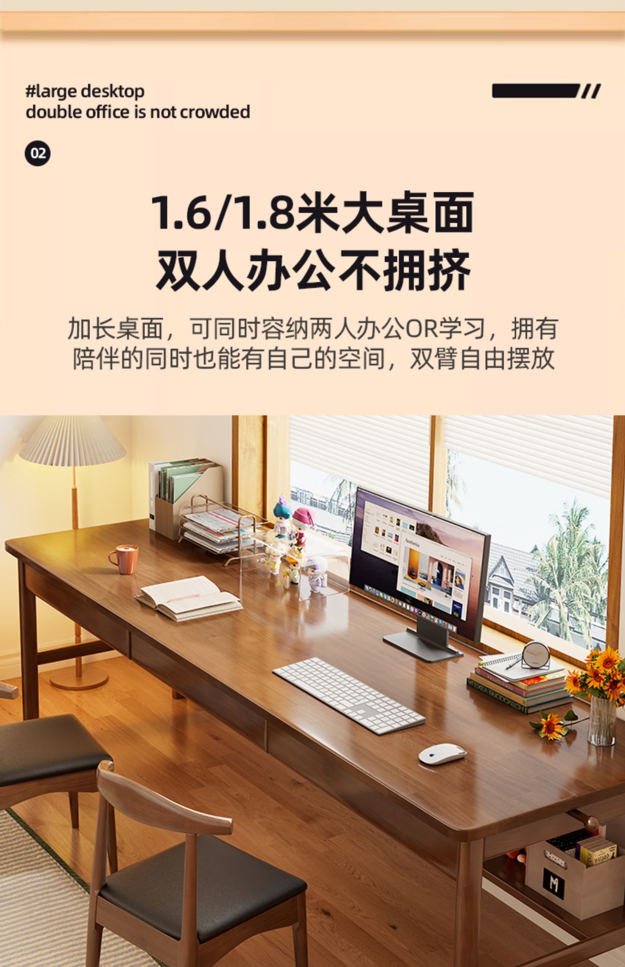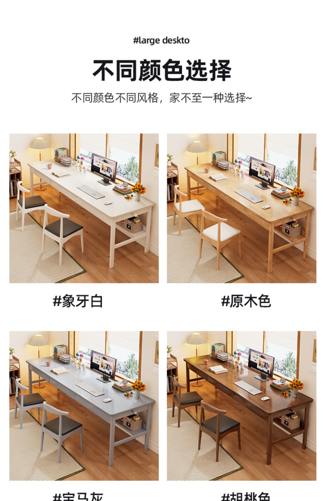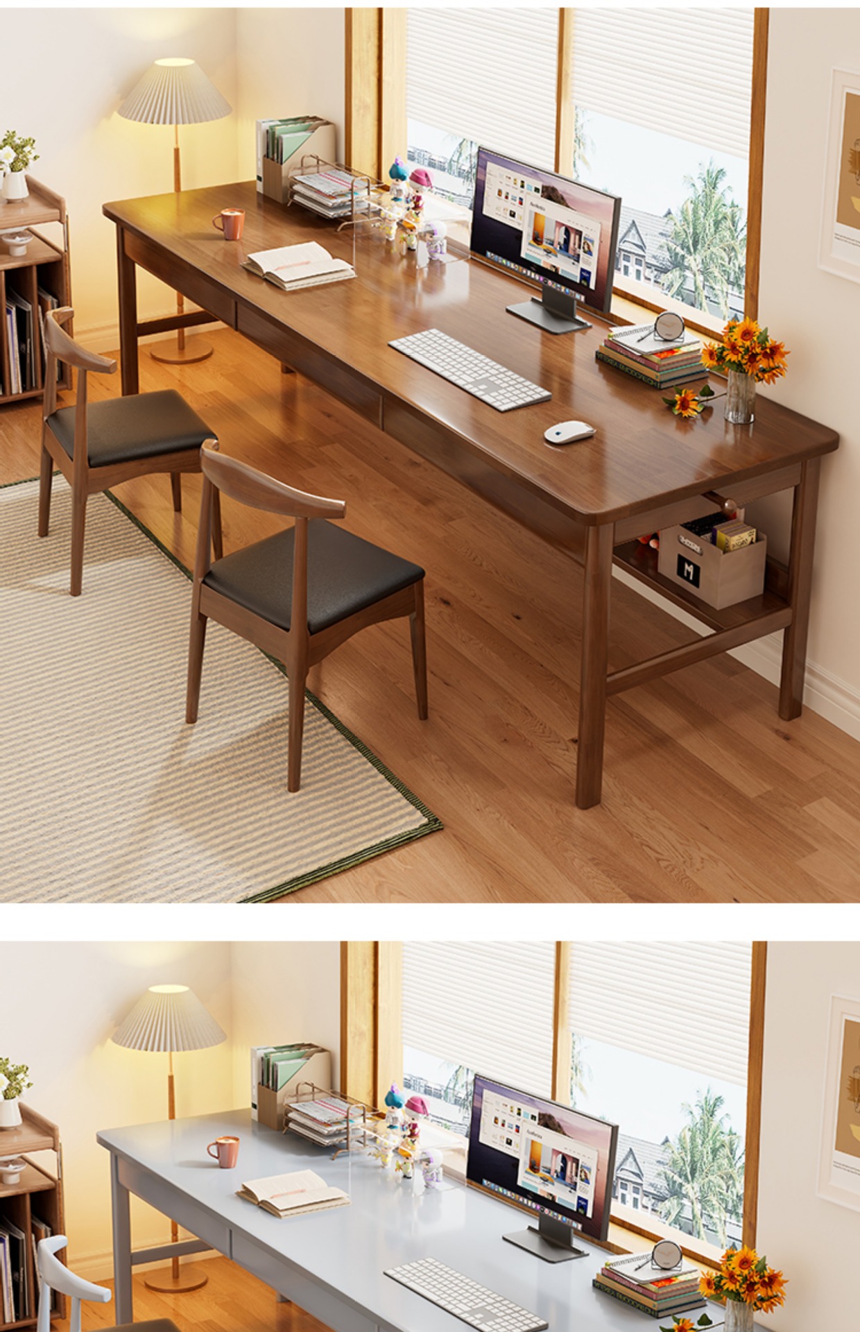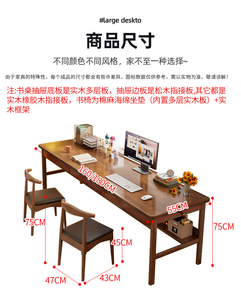 모든 단단한 나무 더블 책상 간단한 현대 긴 컴퓨터 책상 연구 창 책상 홈 침실 책상