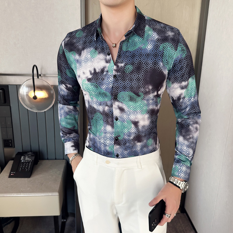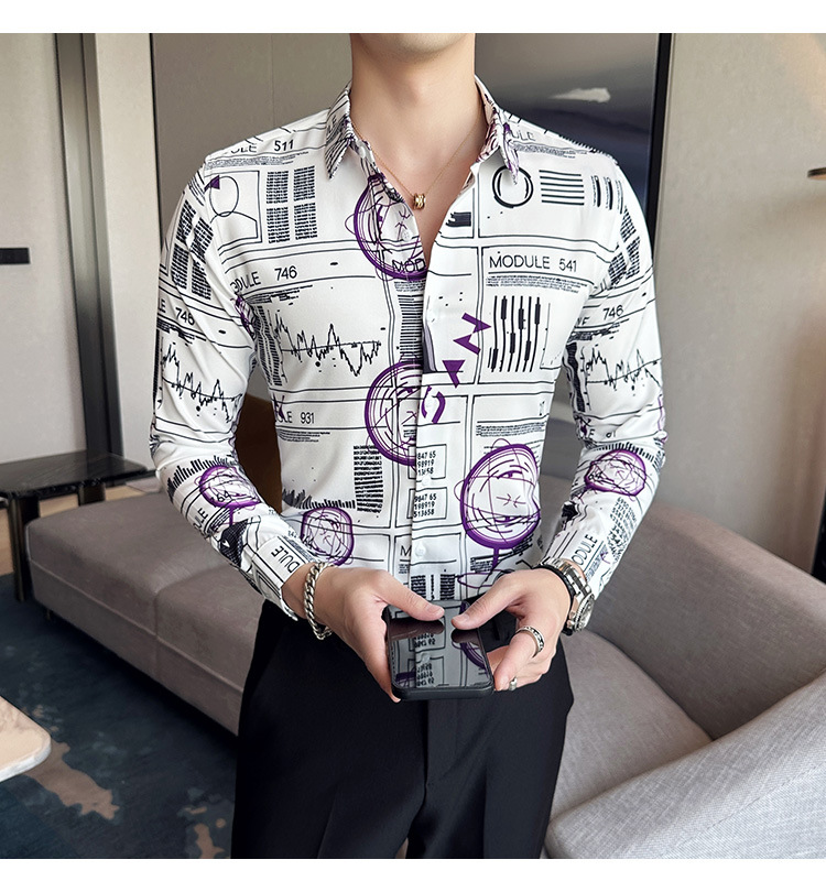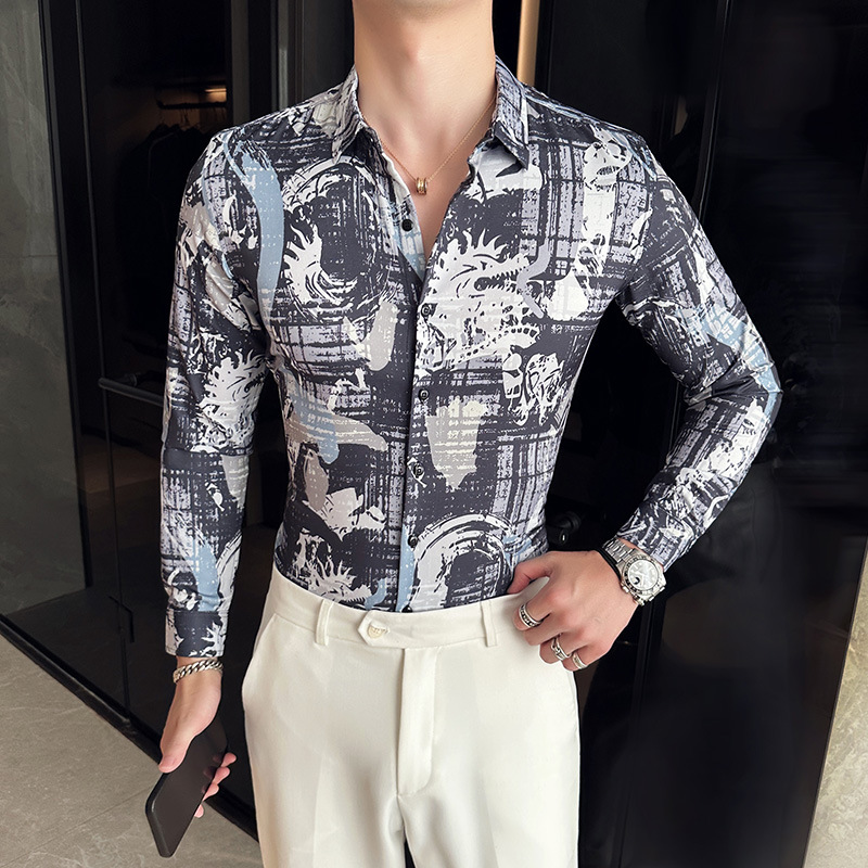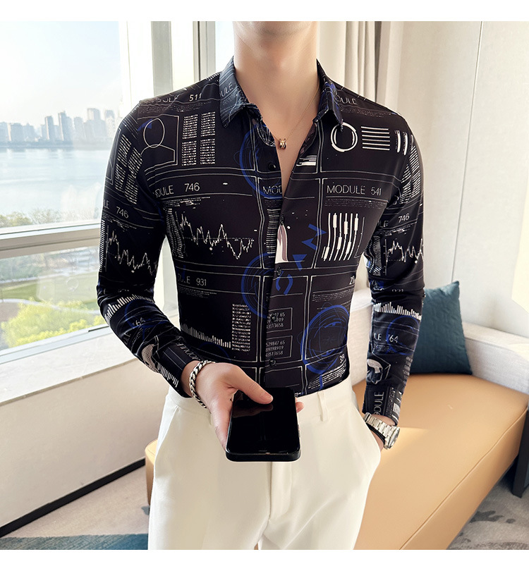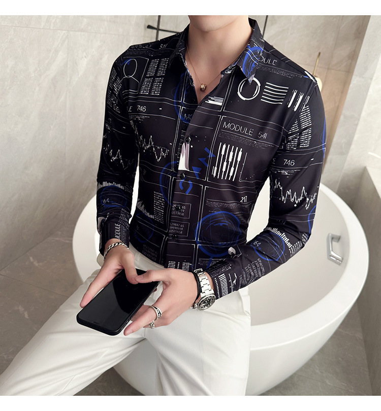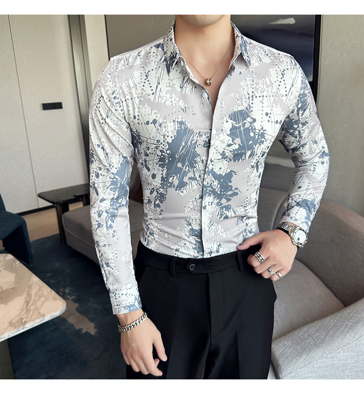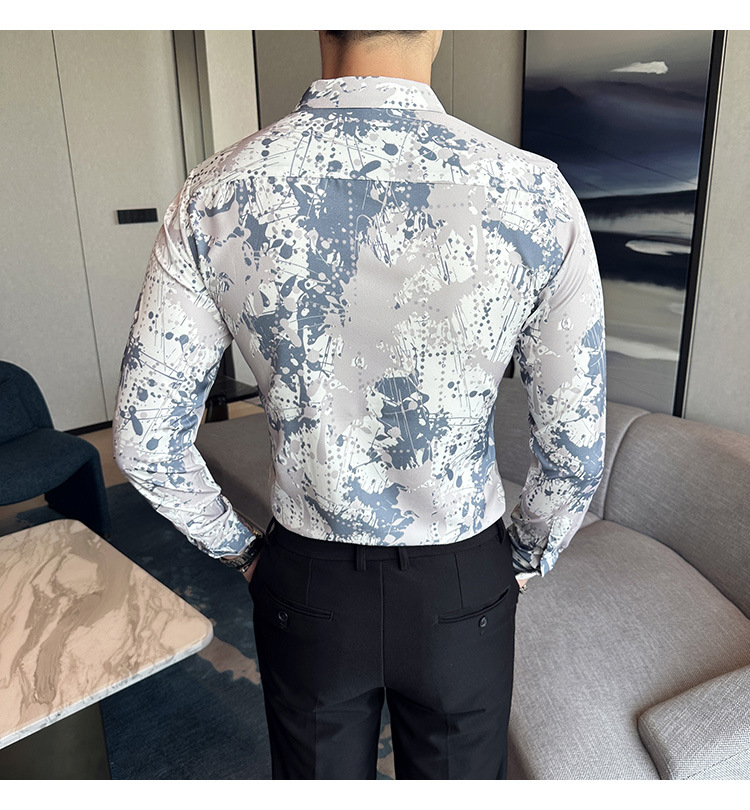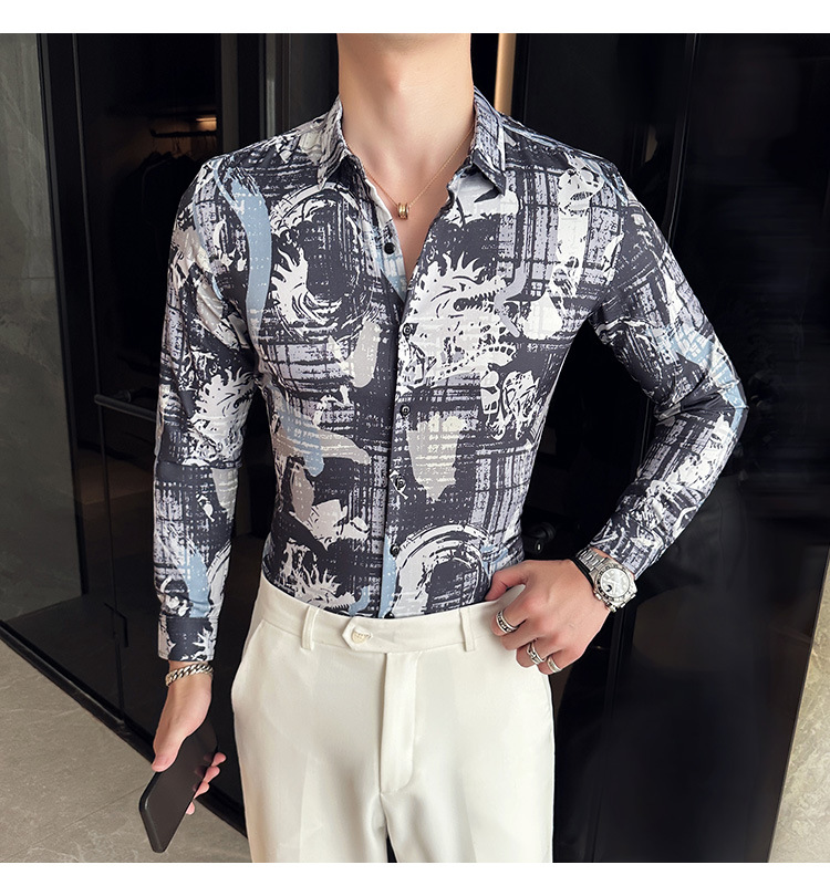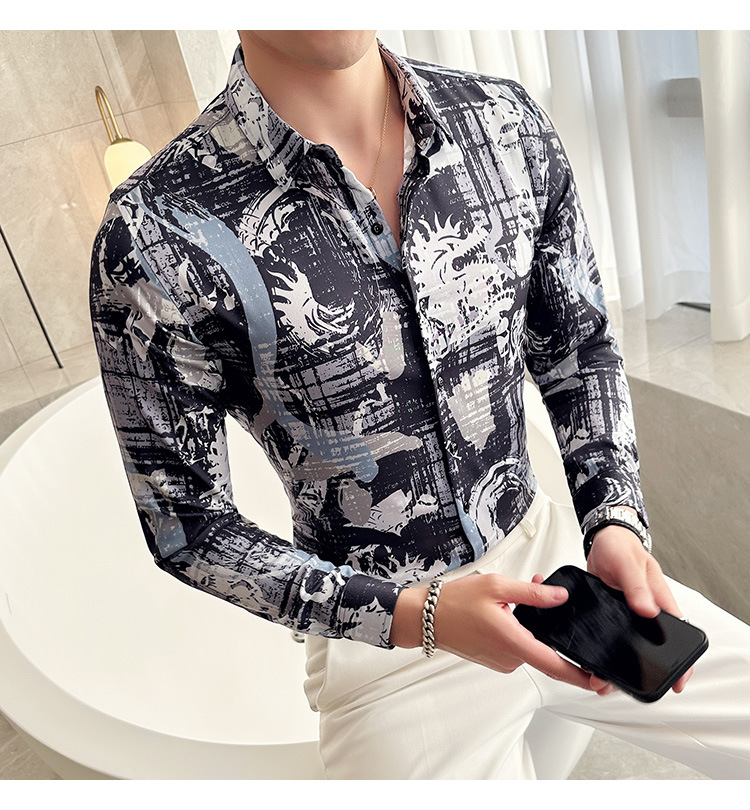 새로운 남자의 옷깃 비 다림질 긴 소매 셔츠 이른 가을 패션 디지털 인쇄 캐주얼 셔츠 컬렉션
