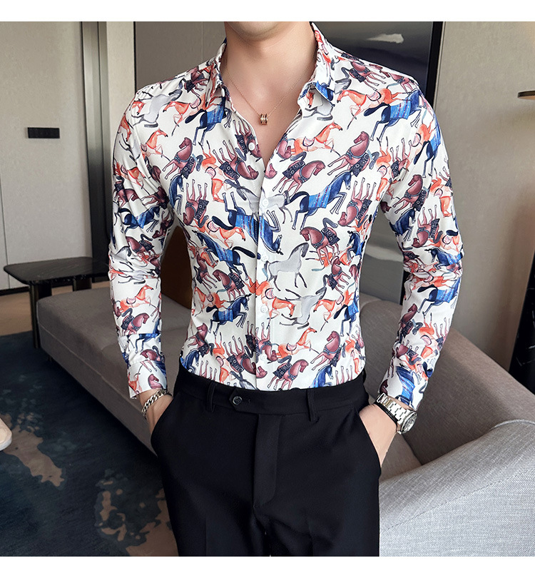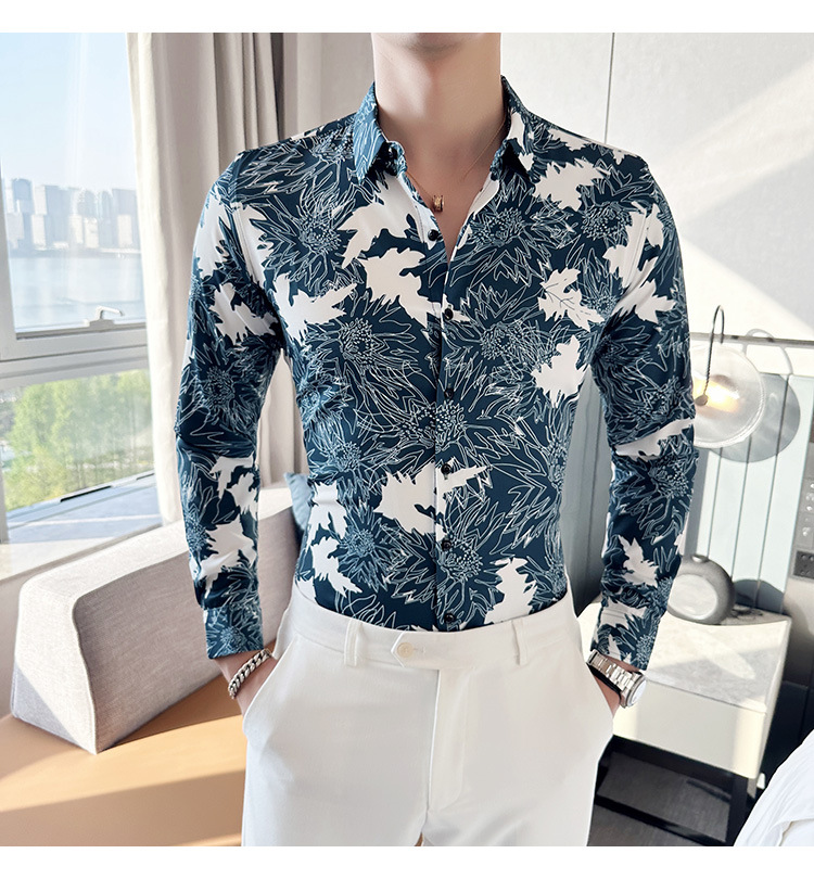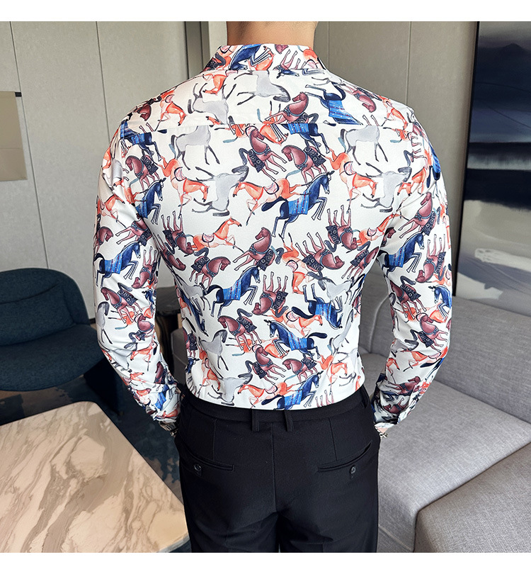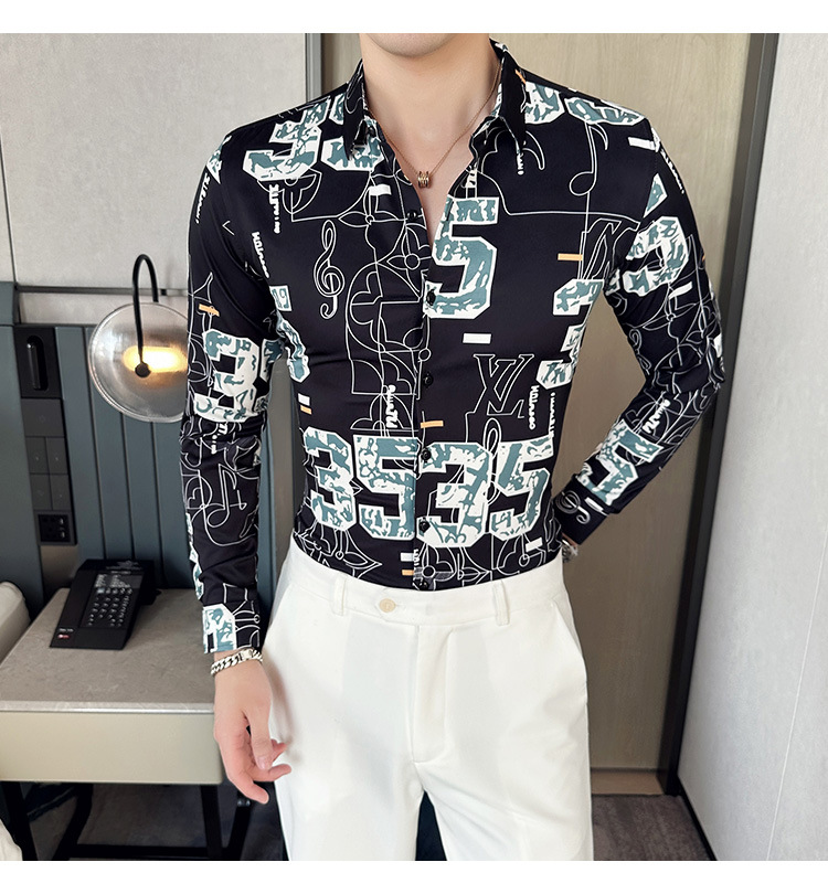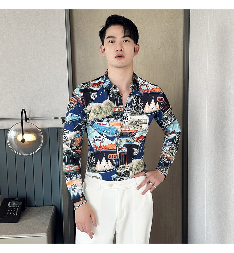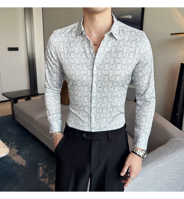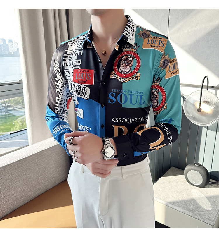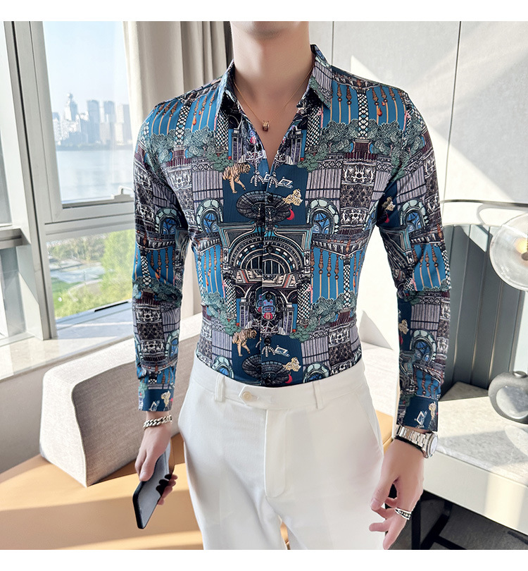 새로운 남자의 옷깃 비 다림질 긴 소매 셔츠 이른 가을 패션 디지털 인쇄 캐주얼 셔츠 컬렉션