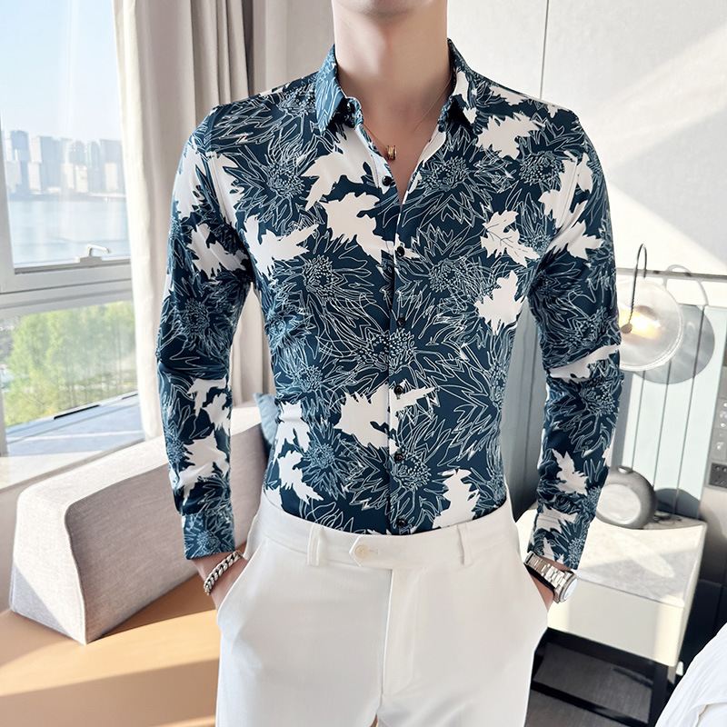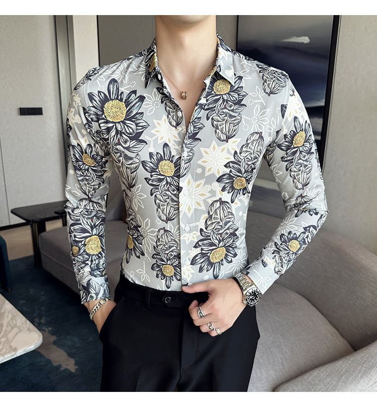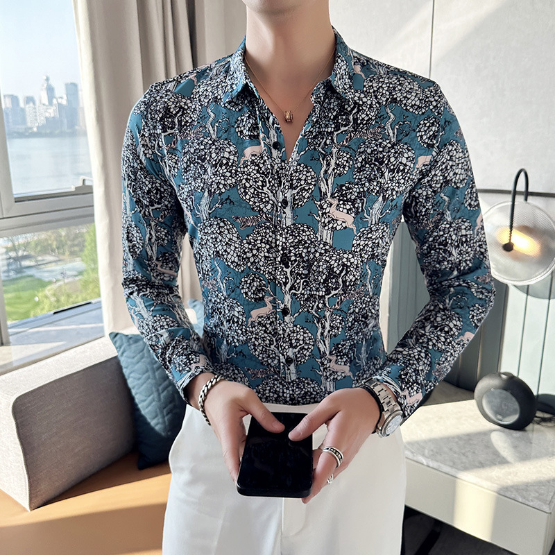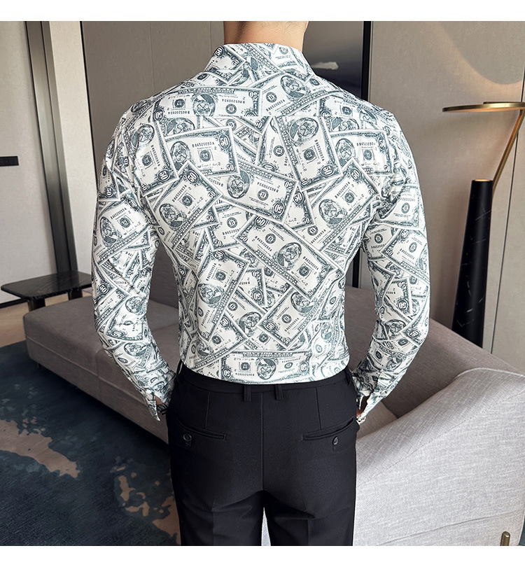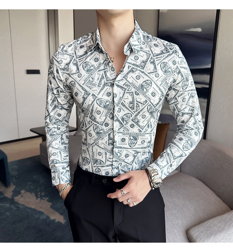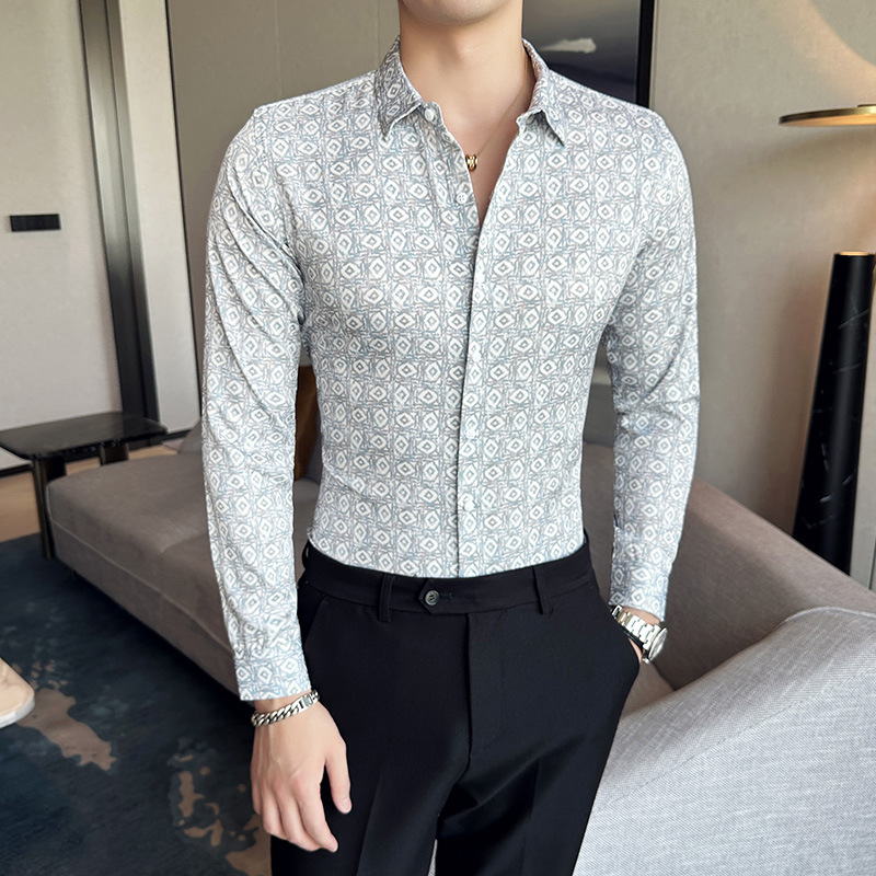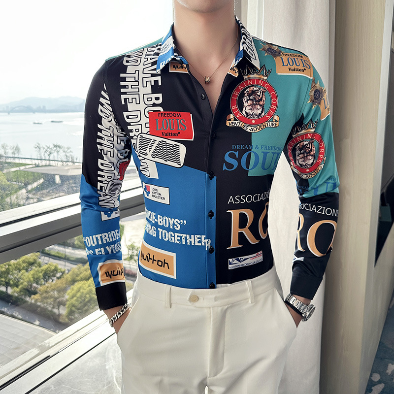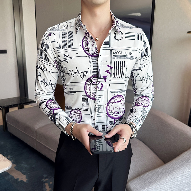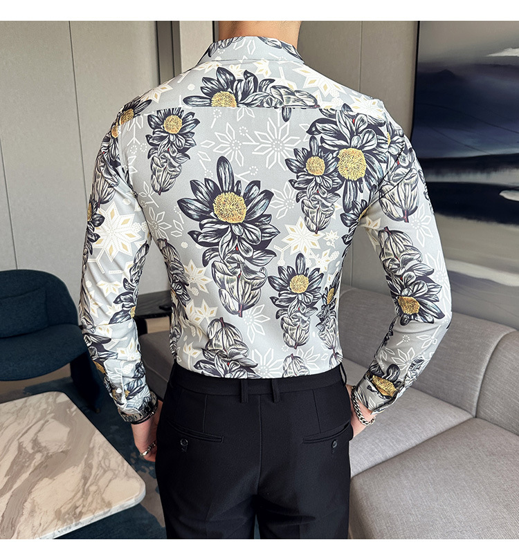 새로운 남자의 옷깃 비 다림질 긴 소매 셔츠 이른 가을 패션 디지털 인쇄 캐주얼 셔츠 컬렉션
