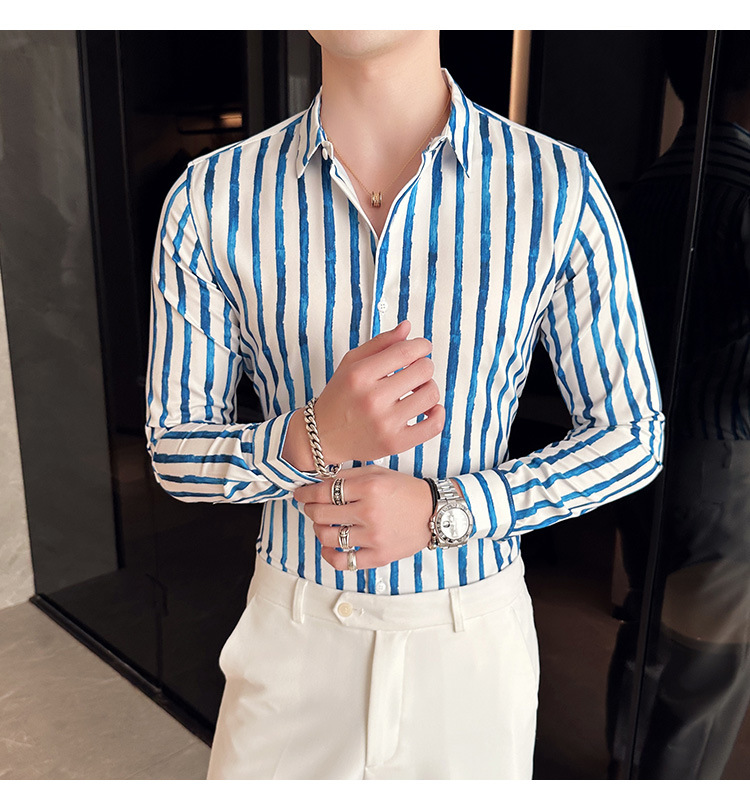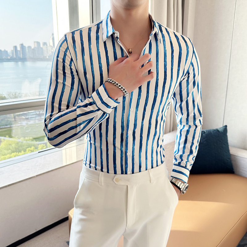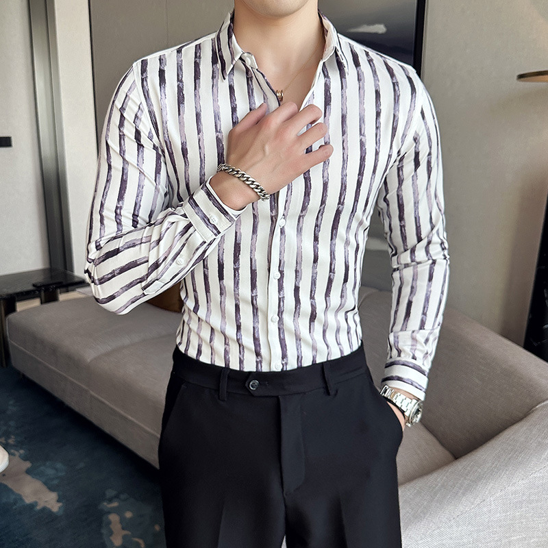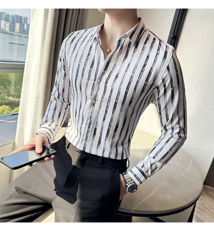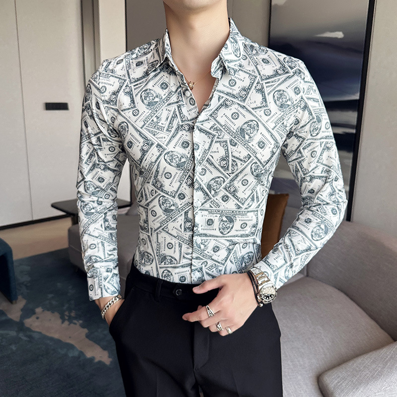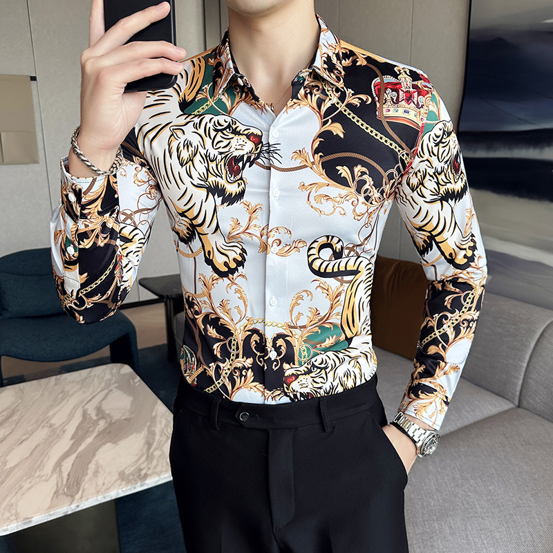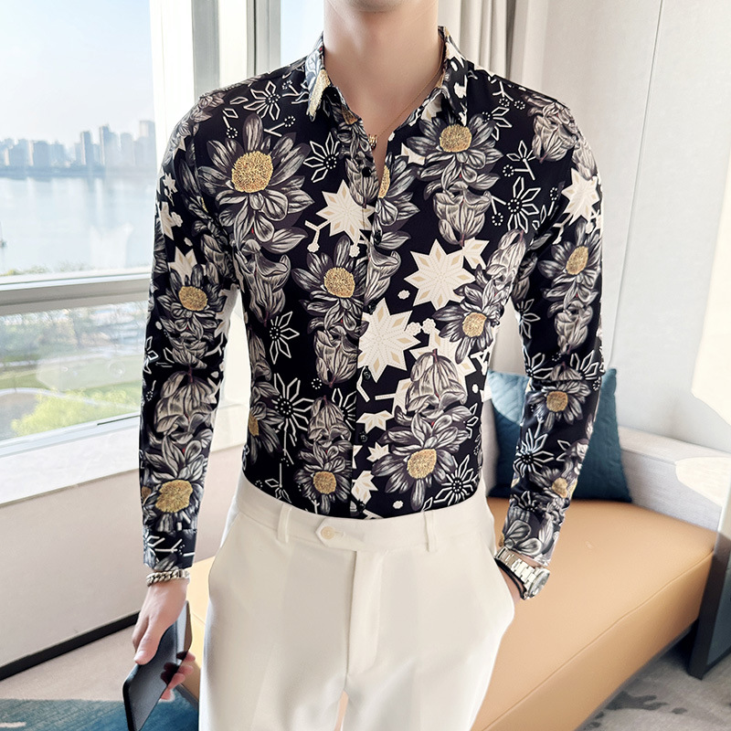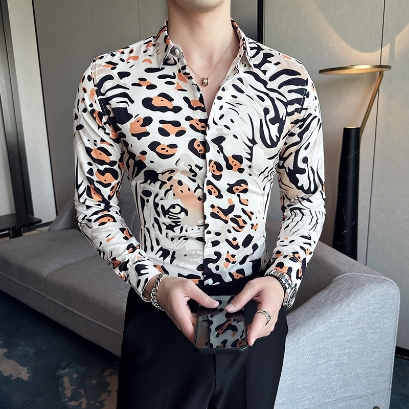 새로운 남자의 옷깃 비 다림질 긴 소매 셔츠 이른 가을 패션 디지털 인쇄 캐주얼 셔츠 컬렉션