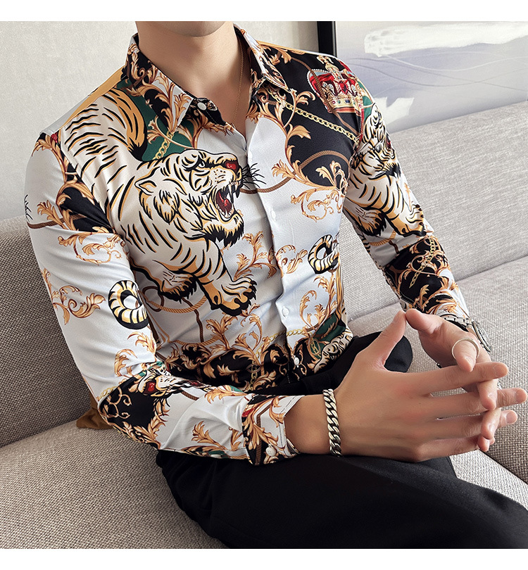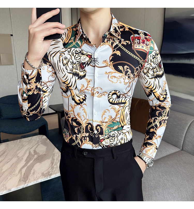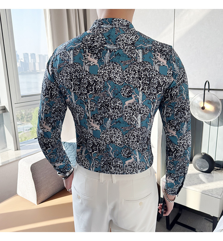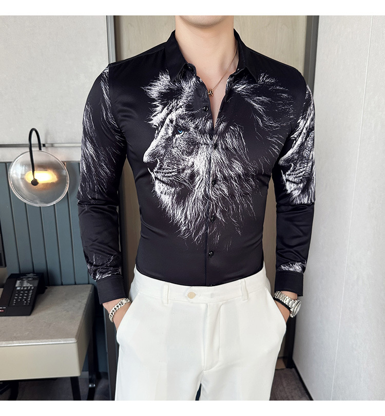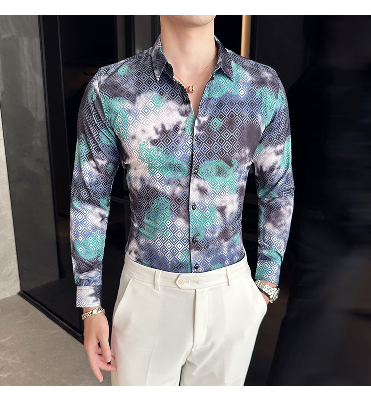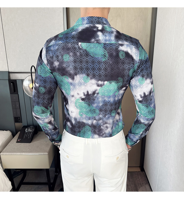 새로운 남자의 옷깃 비 다림질 긴 소매 셔츠 이른 가을 패션 디지털 인쇄 캐주얼 셔츠 컬렉션스토어 가기