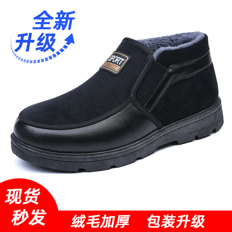 오래 된 베이징 면화 2023 겨울 새로운 기모 두꺼운 남성 신발 캐주얼 부드러운 바닥 중년 따뜻한 면화 부츠스토어 가기