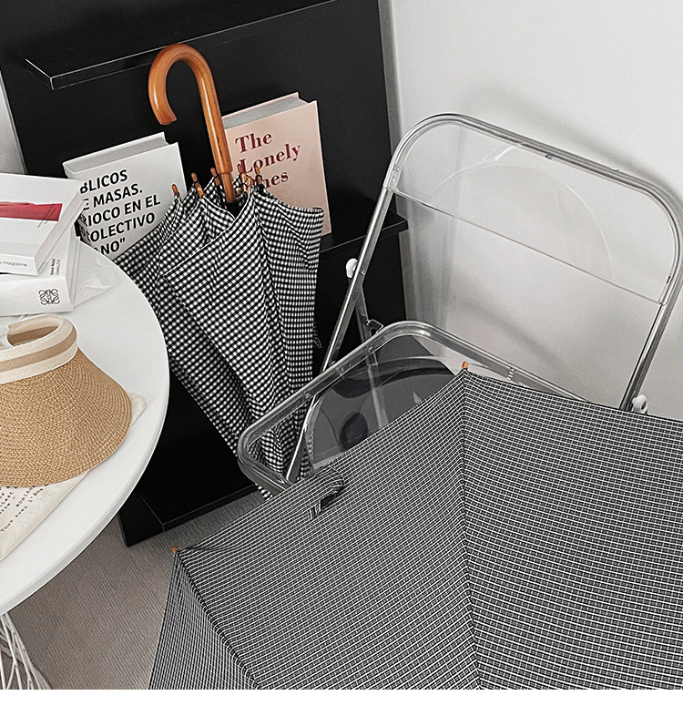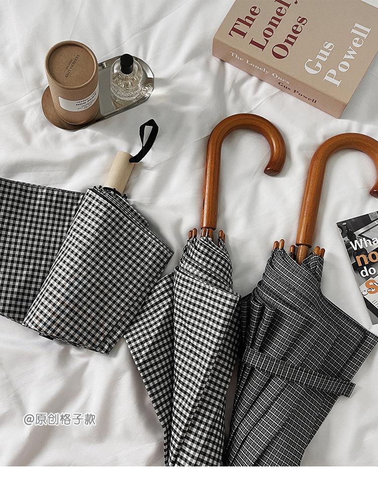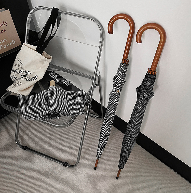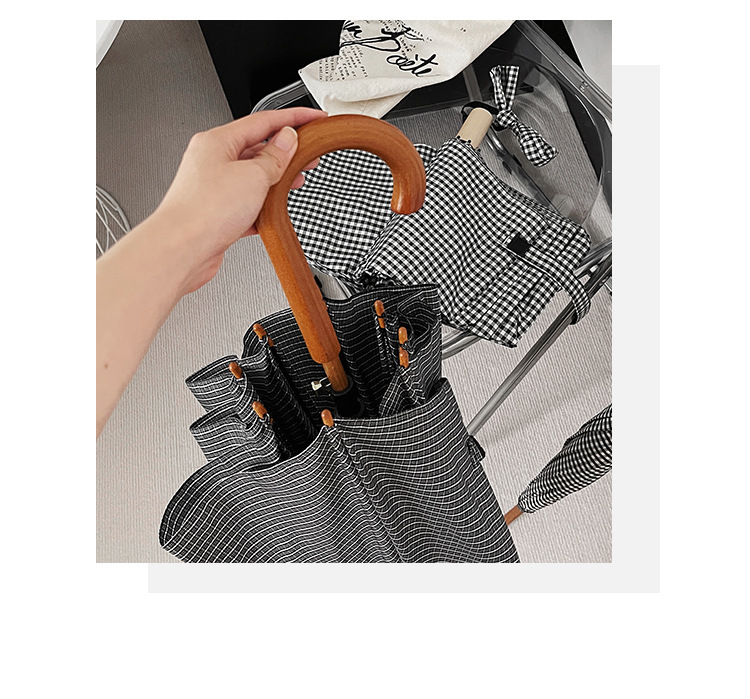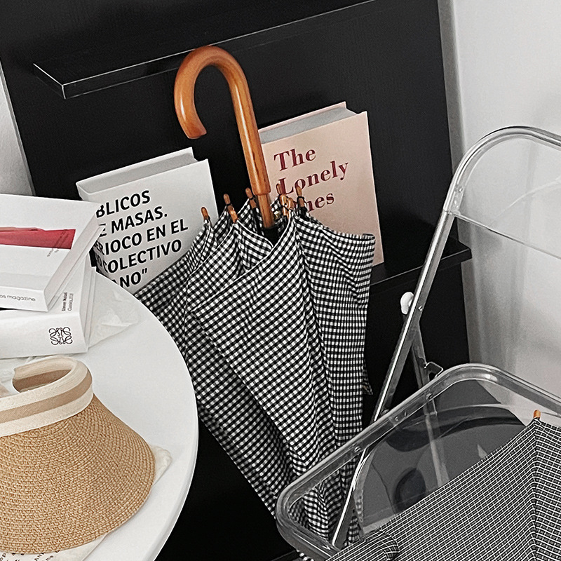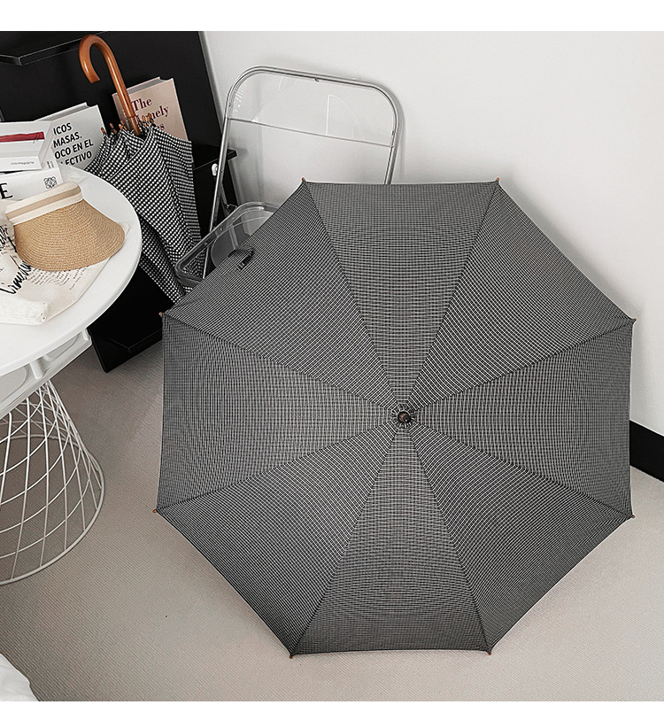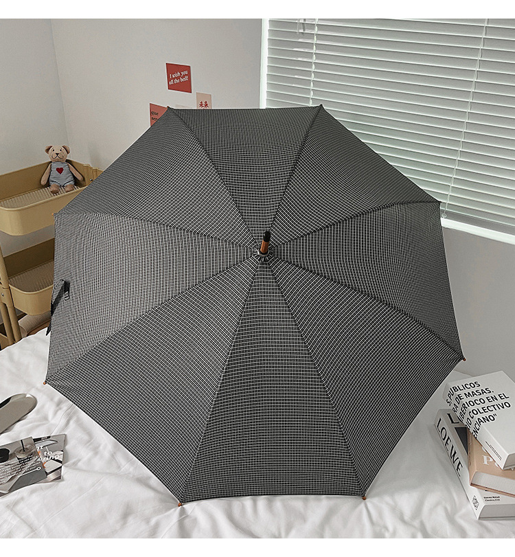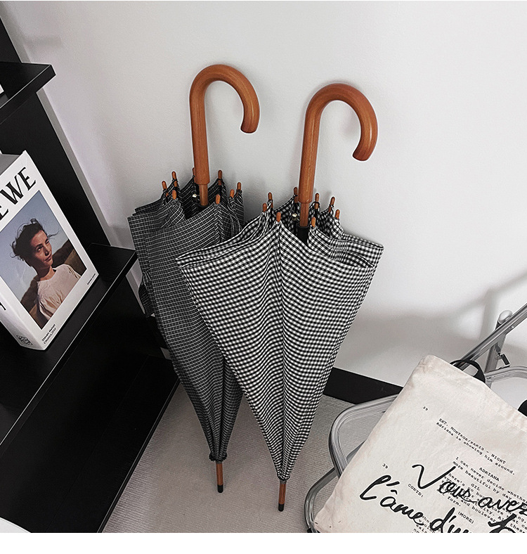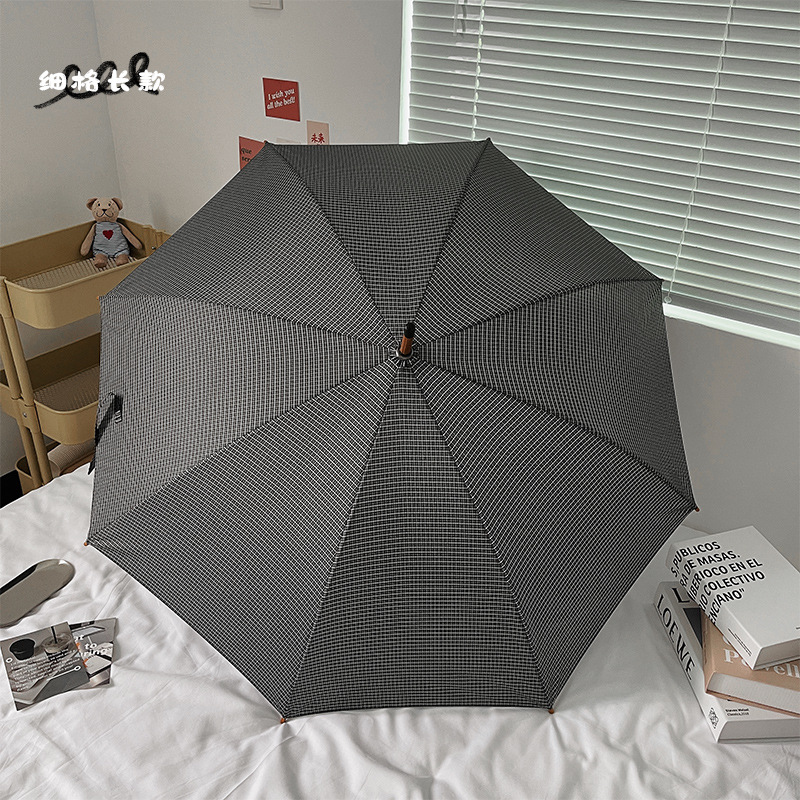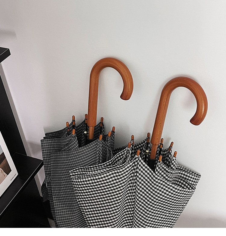 클래식 격자 무늬 단단한 나무 직선 우산 자외선 차단 블랙 고무 차양 남녀공용 강화 방풍 긴 우산스토어 가기
