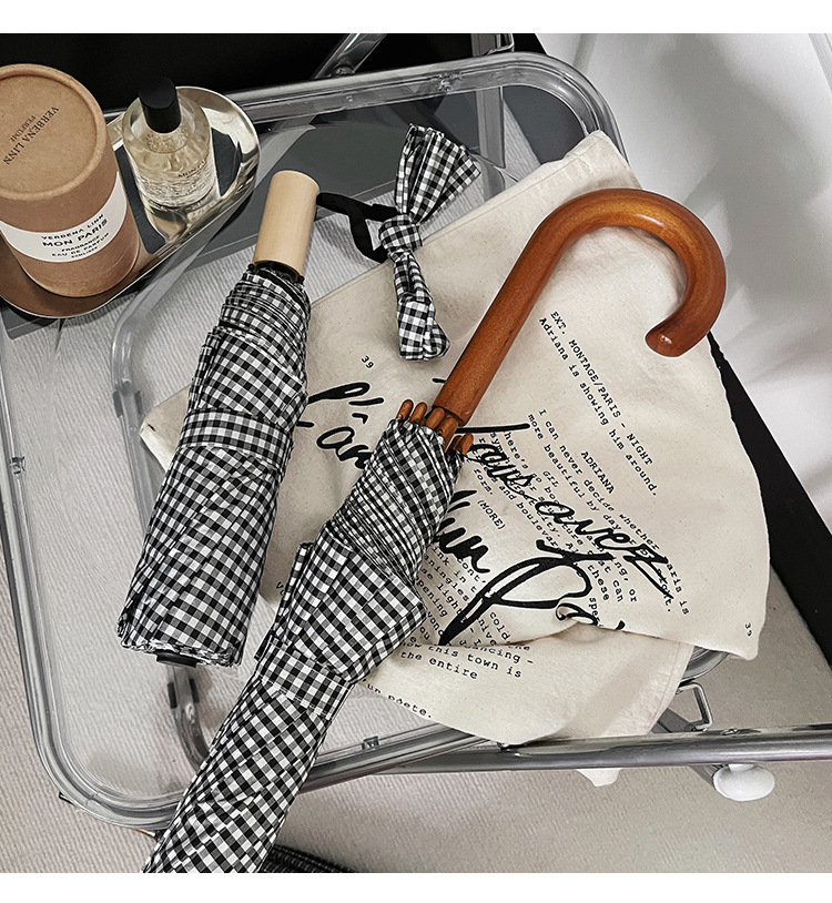 • 흑백 격자 무늬 접는 우산