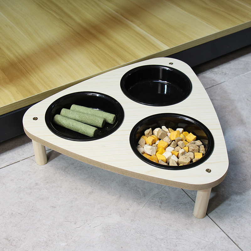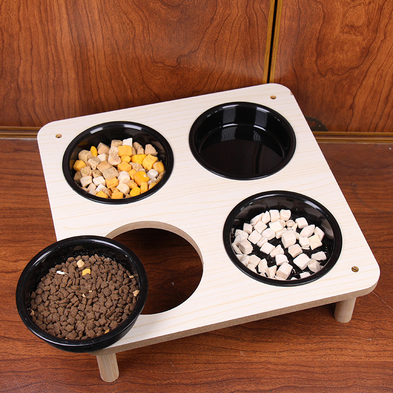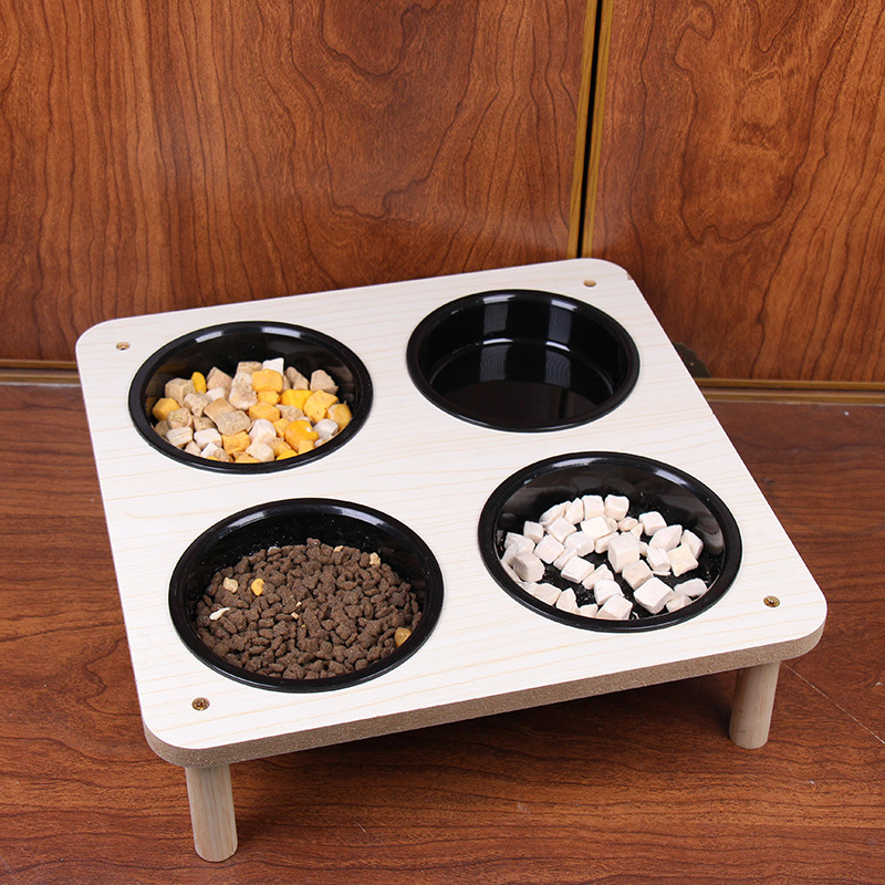 우드 그레인 더블 볼 애완 동물 고양이 그릇 랙 3 그릇 이동식 및 빨 애완 동물 그릇 플랫 랙 나무 개 분지 랙 4 그릇 고양이 그릇스토어 가기