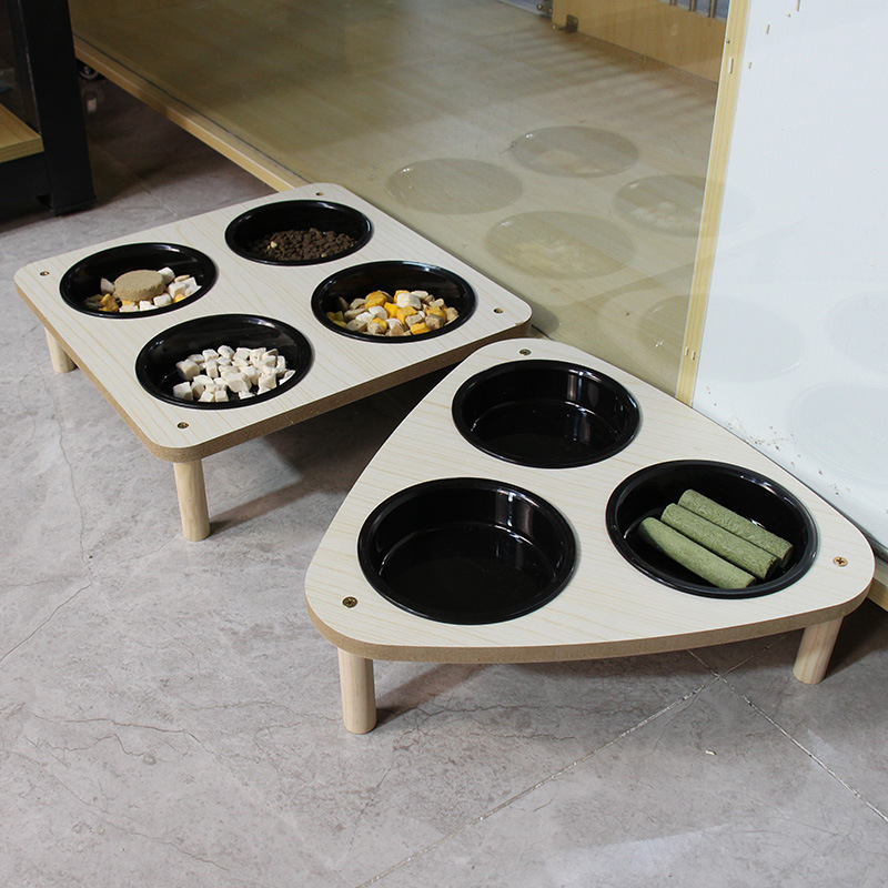 우드 그레인 더블 볼 애완 동물 고양이 그릇 랙 3 그릇 이동식 및 빨 애완 동물 그릇 플랫 랙 나무 개 분지 랙 4 그릇 고양이 그릇