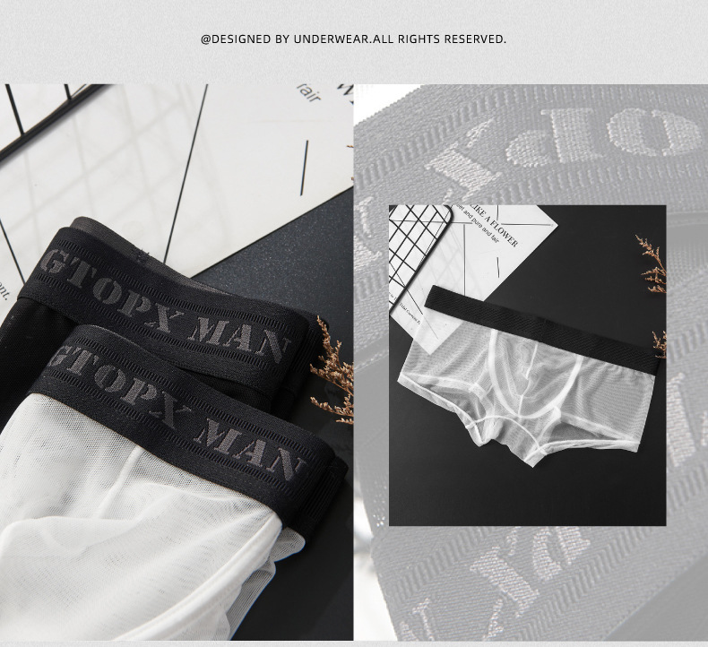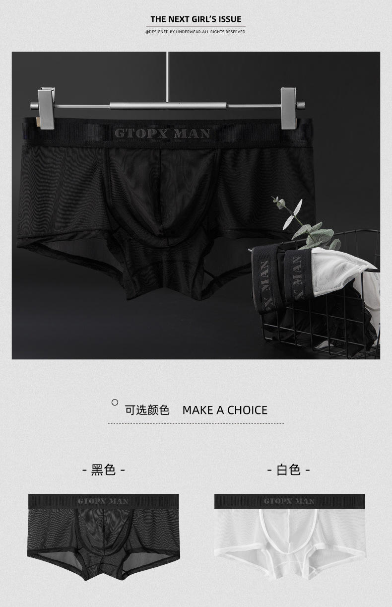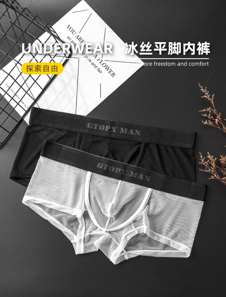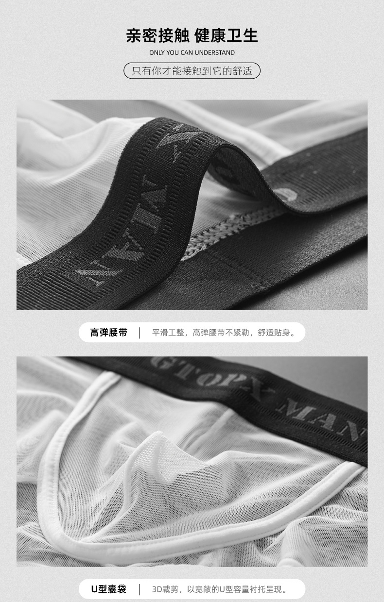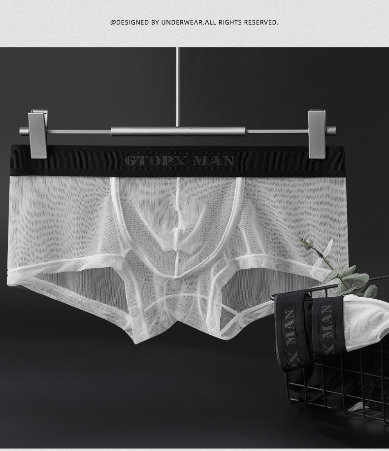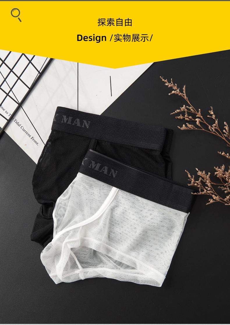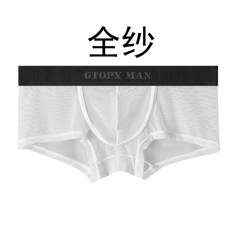 남자의 전체 메쉬 독특한 얼음 실크 U-볼록 낮은 허리 얇은 투명 섹시한 메쉬 통기성 복서 팬티스토어 가기