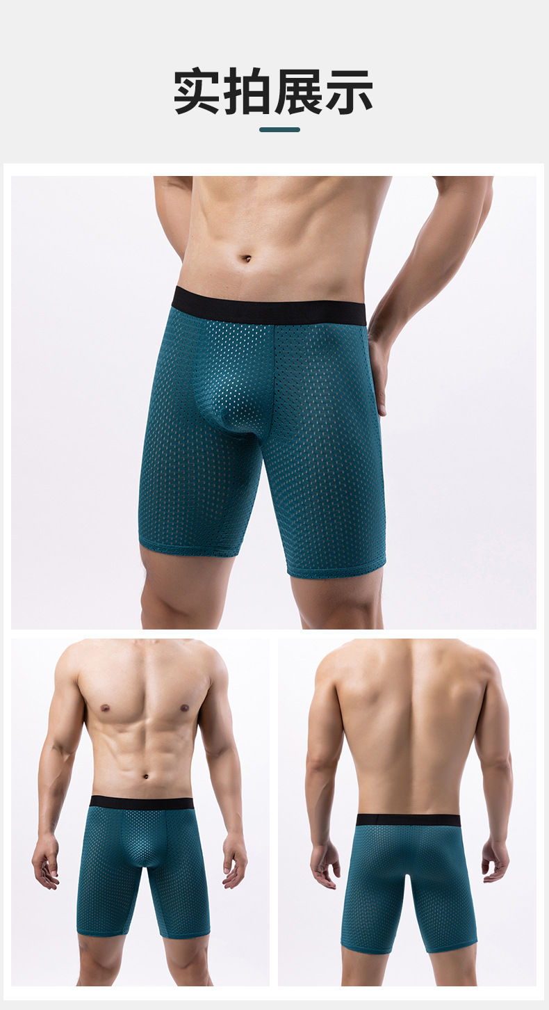 남성용 스포츠 속옷 길어진 아이스 실크 메쉬 섹시 통기성 복서 속옷 러닝 안티 웨어 복서 반바지 도매스토어 가기