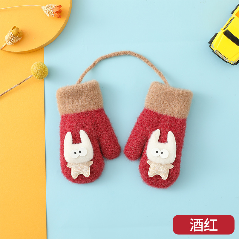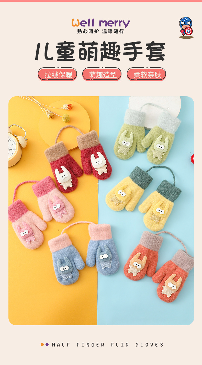 어린이 겨울 따뜻한 장갑 아기 귀여운 만화 두꺼운 로프 목 소년과 소녀를위한 니트 어린이 장갑스토어 가기