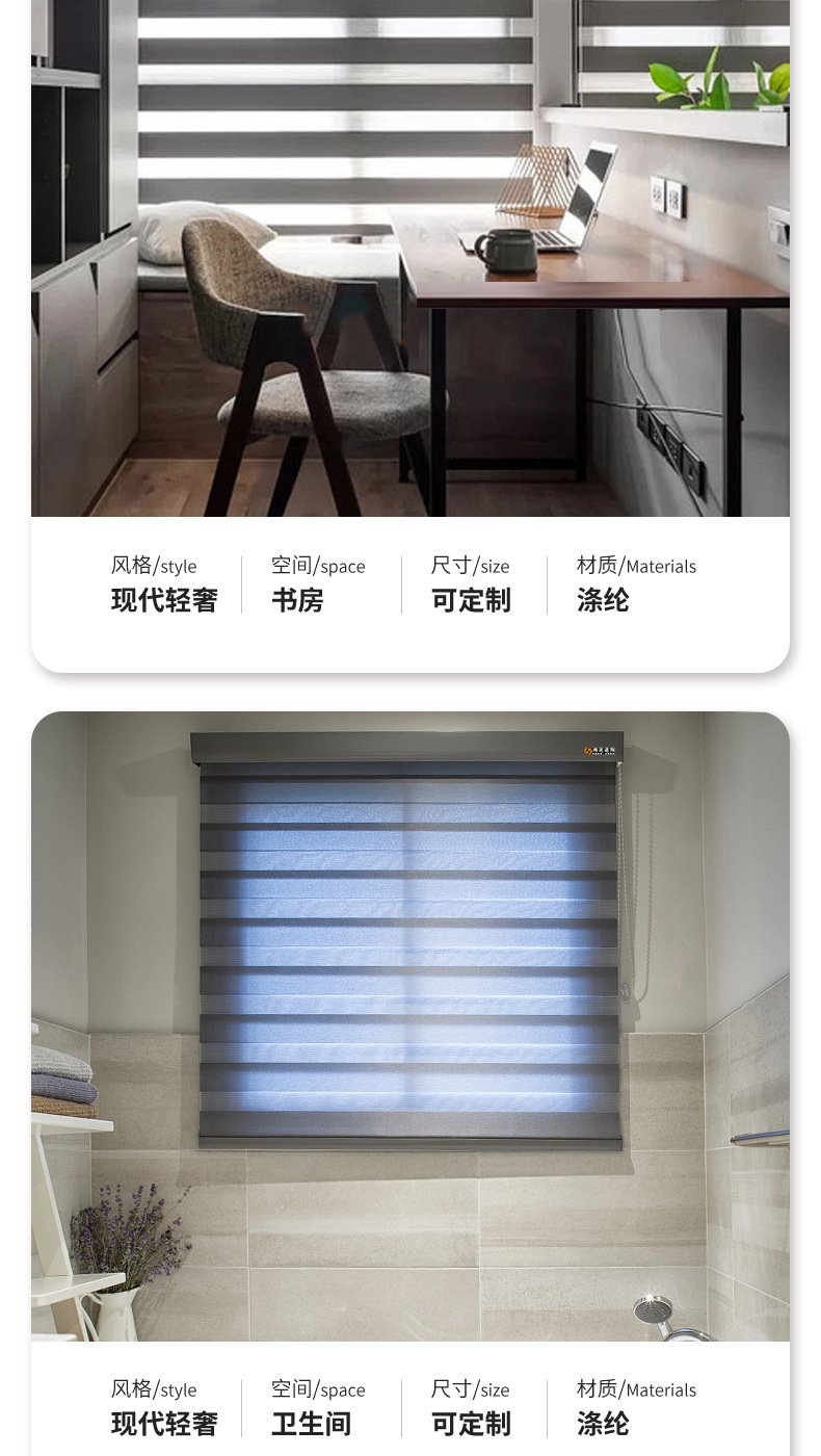 2024 새로운 더블 레이어 롤러 블라인드 부드러운 거즈 블라인드 블라인드 거실 사무실 연구 롤 풀 정전 펀칭 없음스토어 가기
