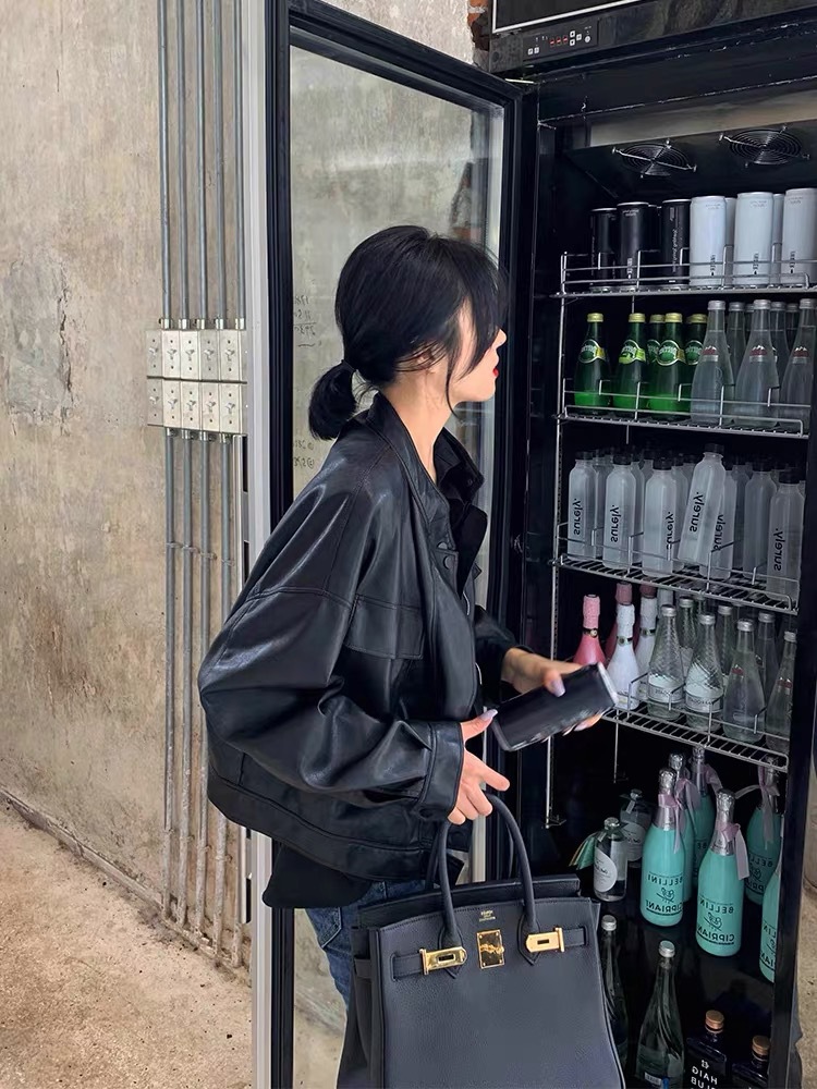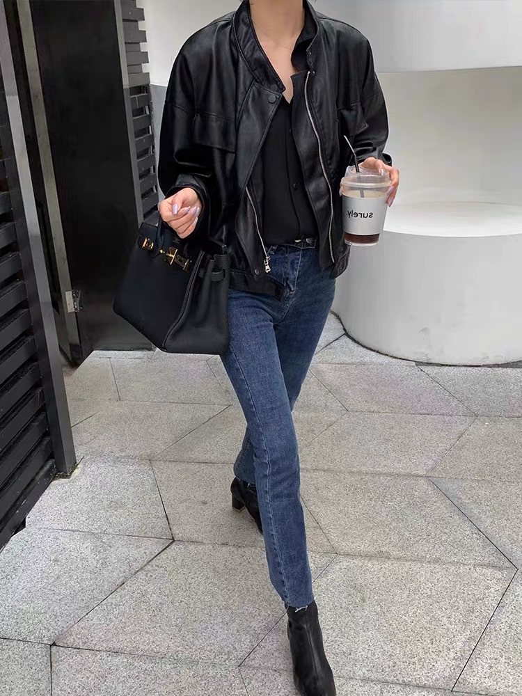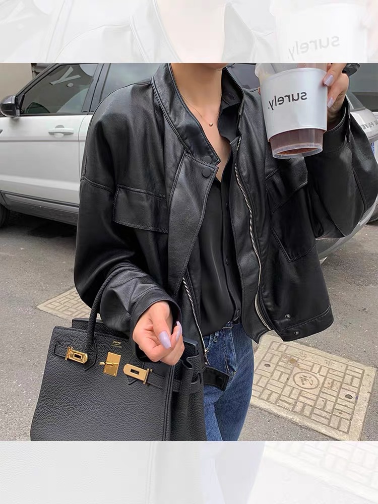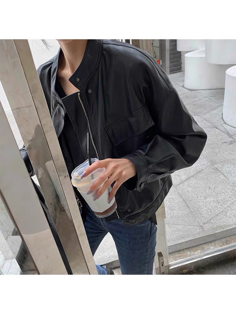 짧은 가죽 자켓 여성의 새로운 봄, 가을 한국 스타일 느슨한 캐주얼 인기 홍콩 스타일 복고풍 pu 자켓 오토바이 자켓스토어 가기