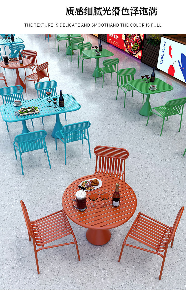 인터넷 축하 야외 테이블과 의자 조합 레스토랑 냄비 레스토랑 캐주얼 식탁과 의자 바 클리어링 바 야외 긴 테이블 작은 사각형 테이블스토어 가기