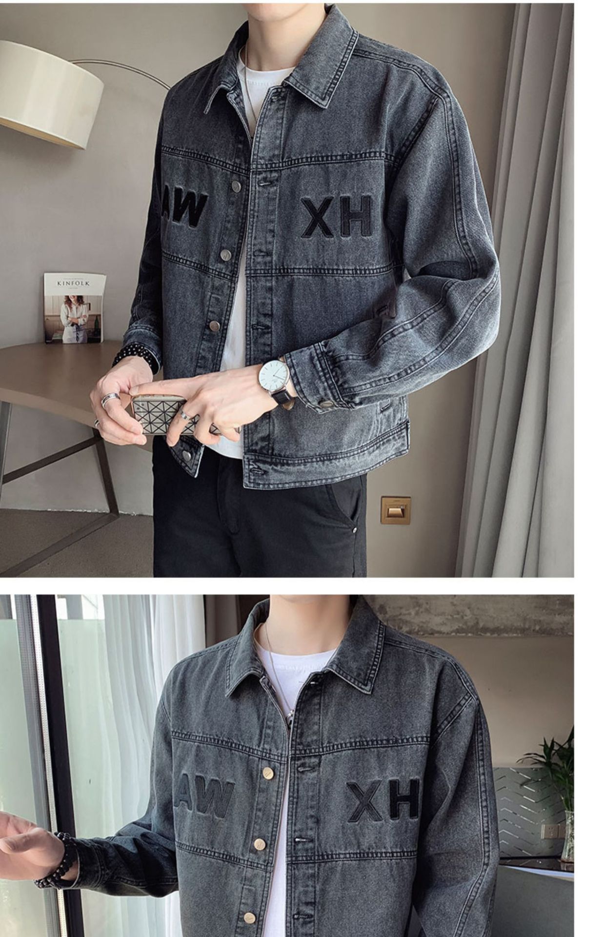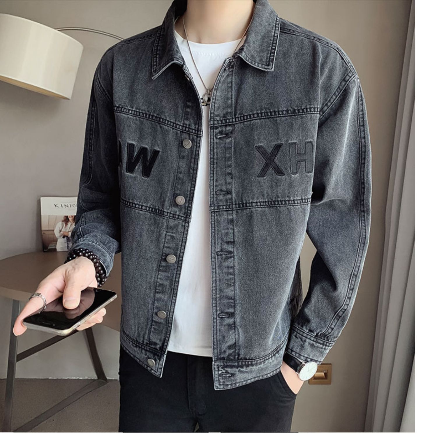 캐주얼 데님 재킷 남성 봄, 가을 남성 데님 의류 트렌디 브랜드 뉴 탑 2024 봄 멋진 재킷스토어 가기