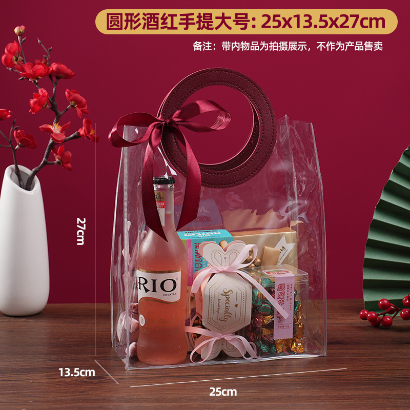 • 투명한 pu 버건디 둥근 큰; 폭 25 * 높이 27 * 측면 13.5; 정사이즈