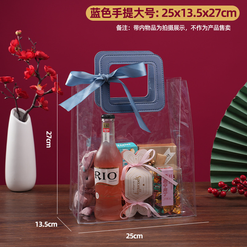 • 투명한 pu 파란색 사각형 큰; 폭 25 * 높이 27 * 측면 13.5; 정사이즈