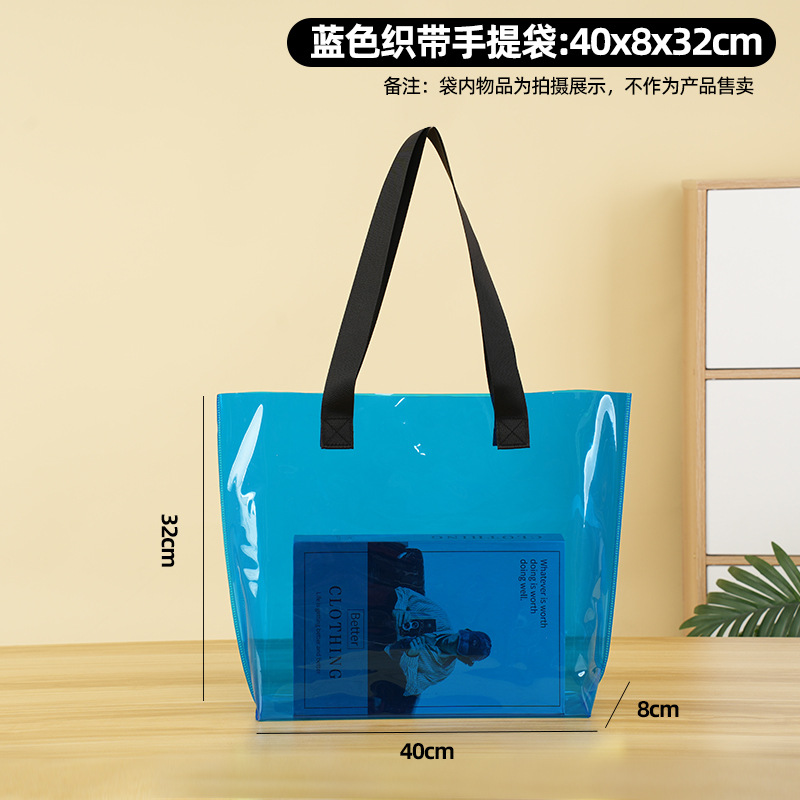 • 투명한 파란색 웨빙 휴대용; 폭 40 * 높이 32 * 바닥 8 측면 없음; 정사이즈