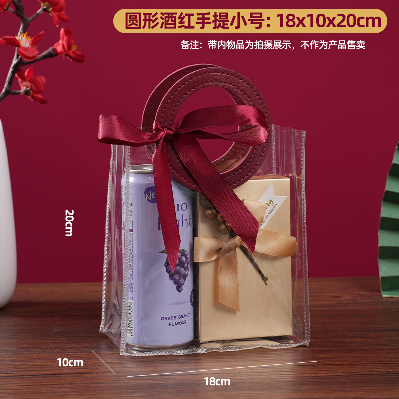 • 투명한 pu 버건디 둥근 스몰 사이즈; 넓은 18 * 높은 20 * 측면 10; 정사이즈