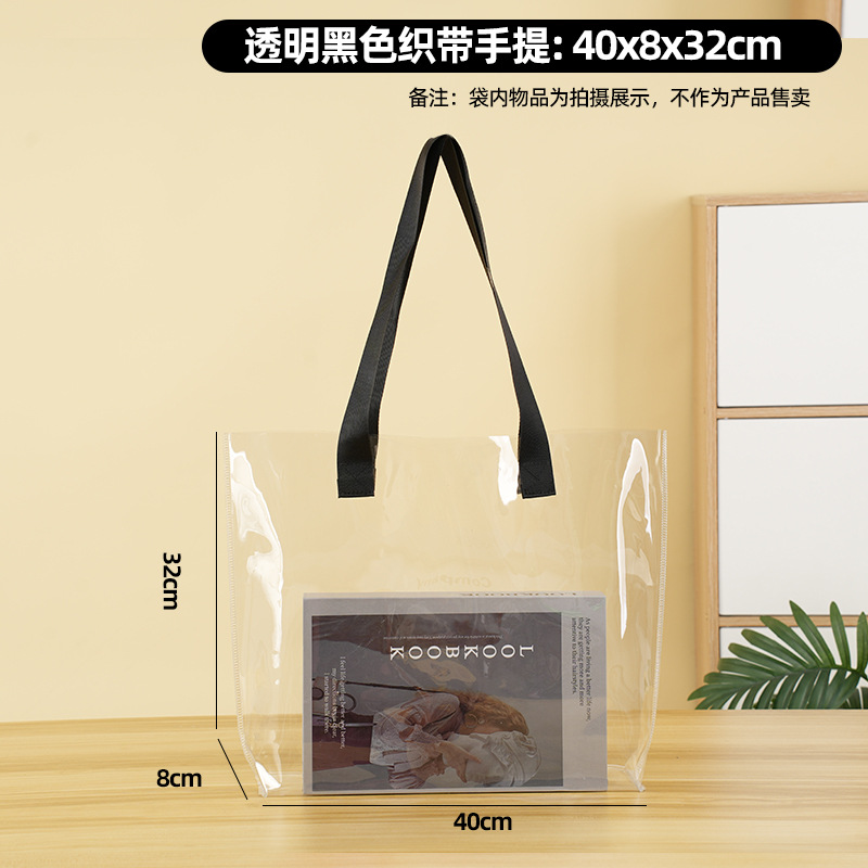 • 투명 + 검정색 PU 핸드백 가장자리, 너비 33*높이 27*측면 12, 일반