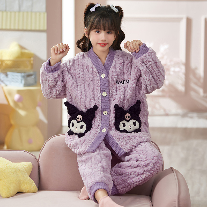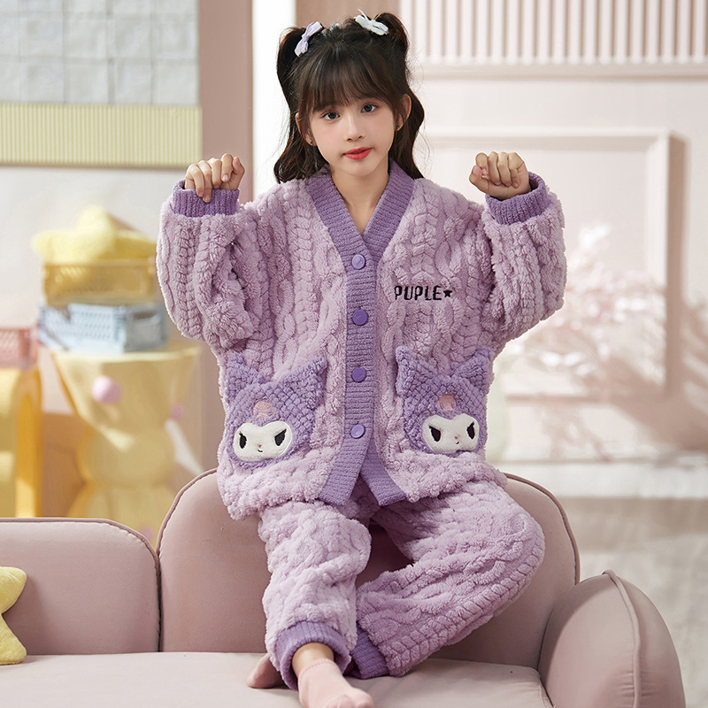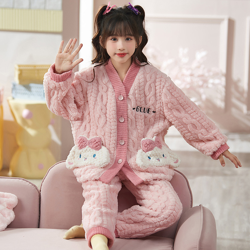 여아 잠옷 플란넬 가을과 겨울 따뜻한 어린이 산호 양털 아기의 분할 가정 옷 카디건 세트