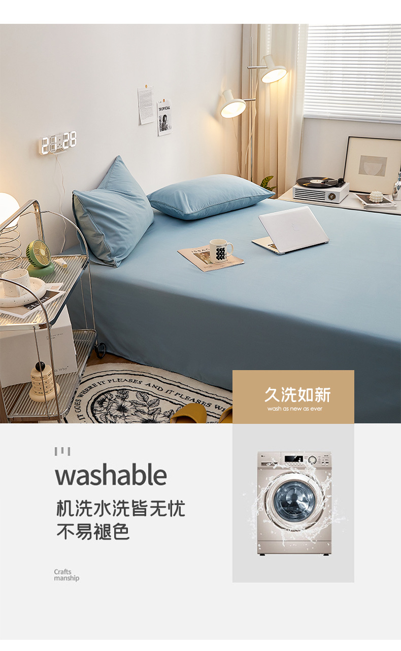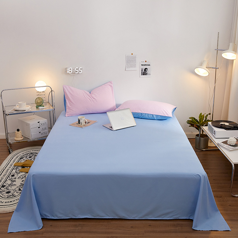 단색 침대 시트 싱글 4 계절 학생 기숙사 싱글 어린이 1.5m 씻은면 두꺼운 더블 침대 시트 베갯잇