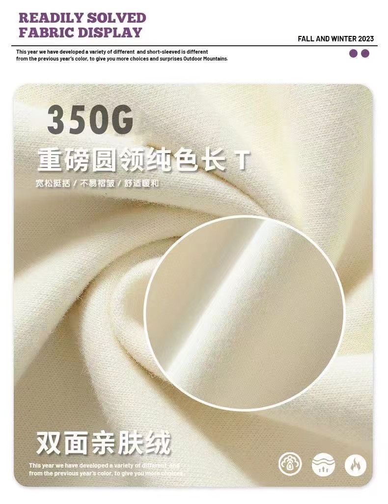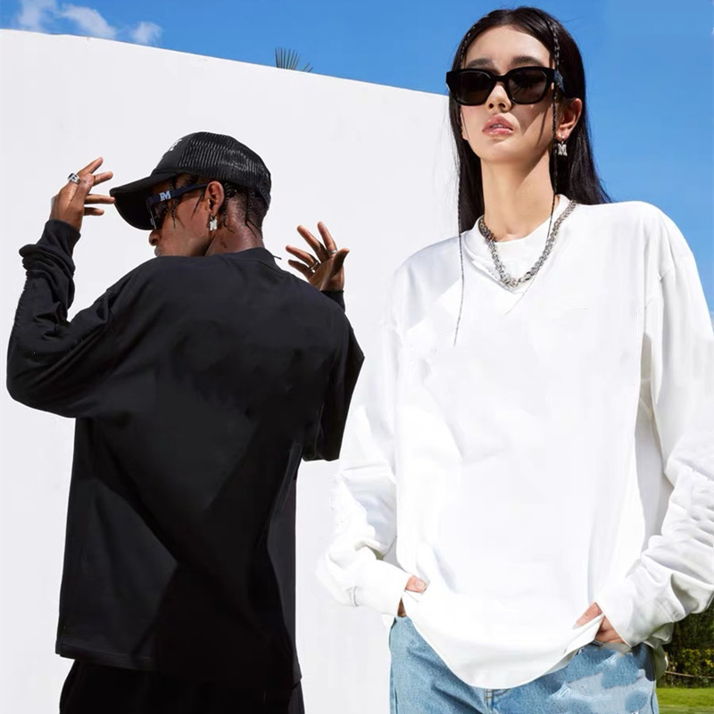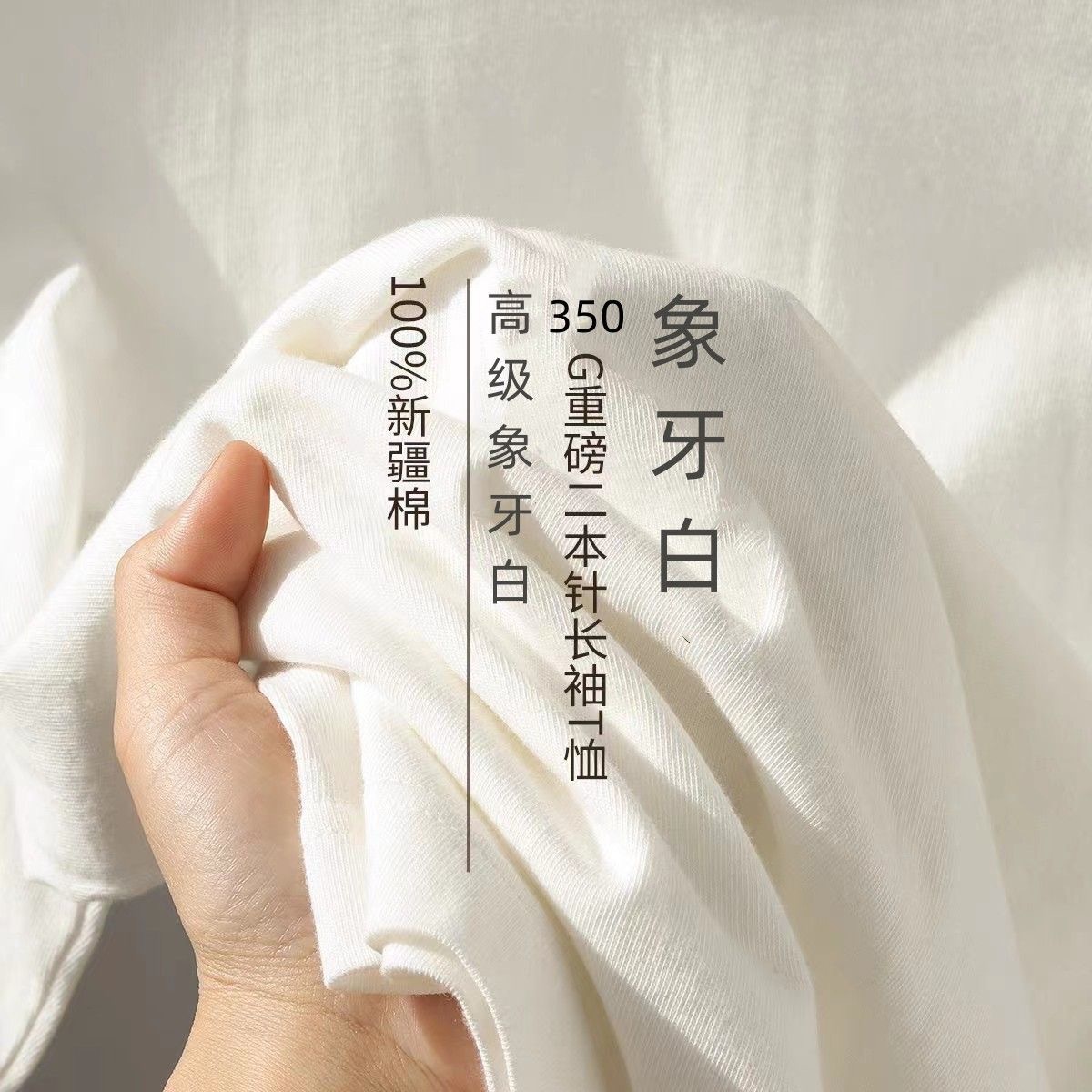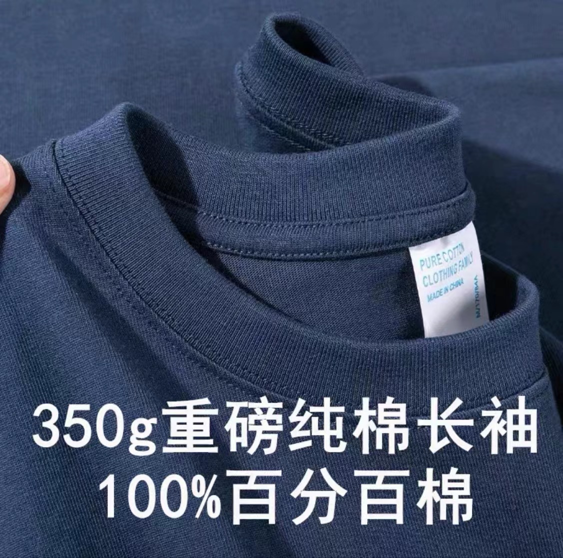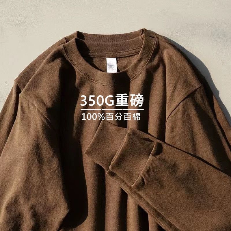 350g 무거운 긴팔 티셔츠 남성과 여성의 순면 두꺼운 느슨한 단색 흰색 봄과 가을 운동복 라운드 넥 베이스 셔츠