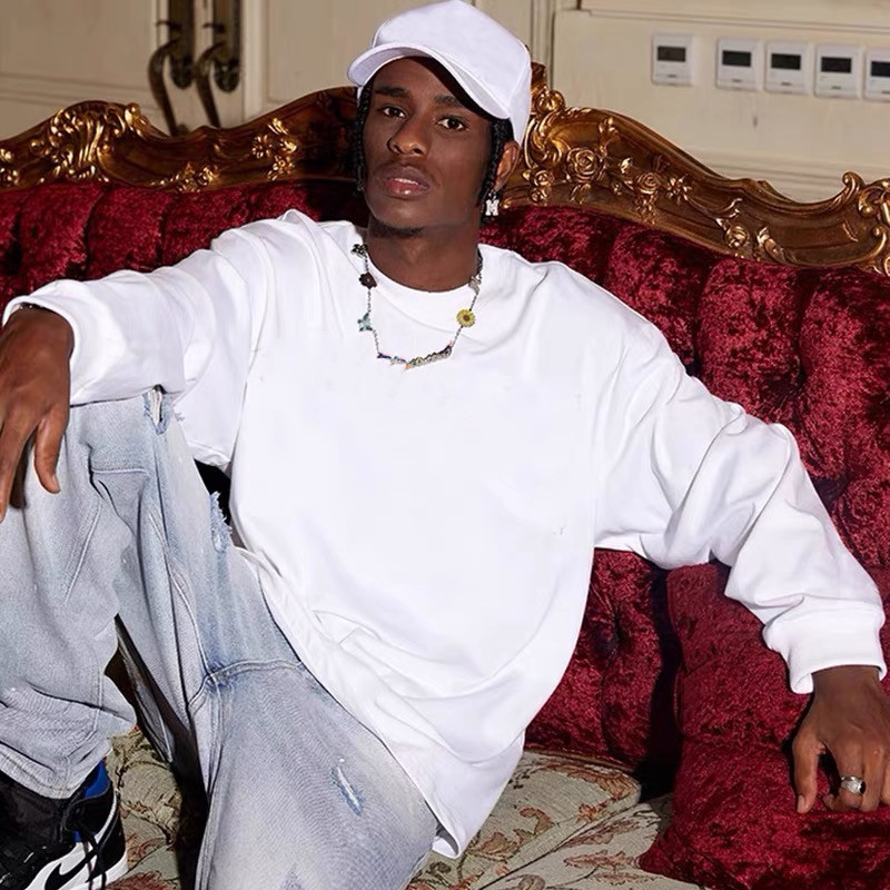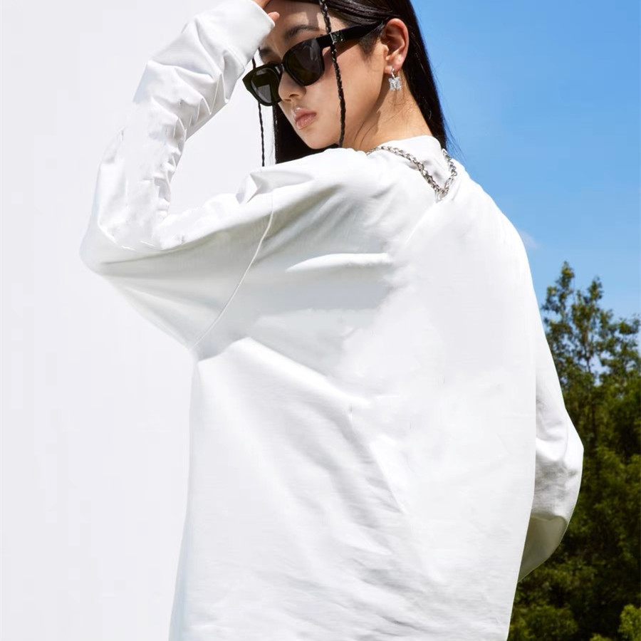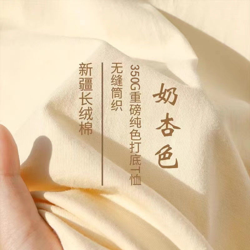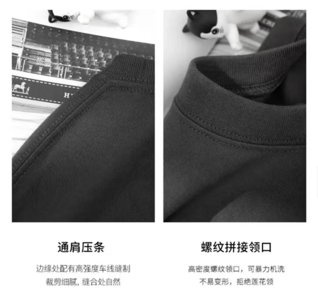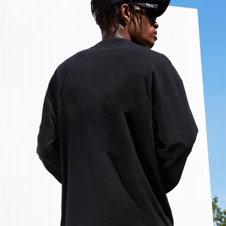 350g 무거운 긴팔 티셔츠 남성과 여성의 순면 두꺼운 느슨한 단색 흰색 봄과 가을 운동복 라운드 넥 베이스 셔츠