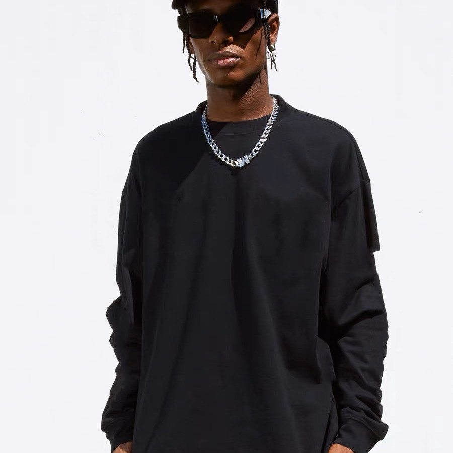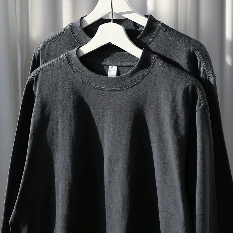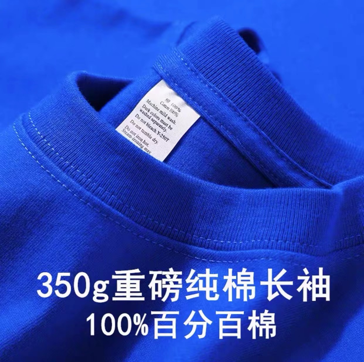 350g 무거운 긴팔 티셔츠 남성과 여성의 순면 두꺼운 느슨한 단색 흰색 봄과 가을 운동복 라운드 넥 베이스 셔츠스토어 가기