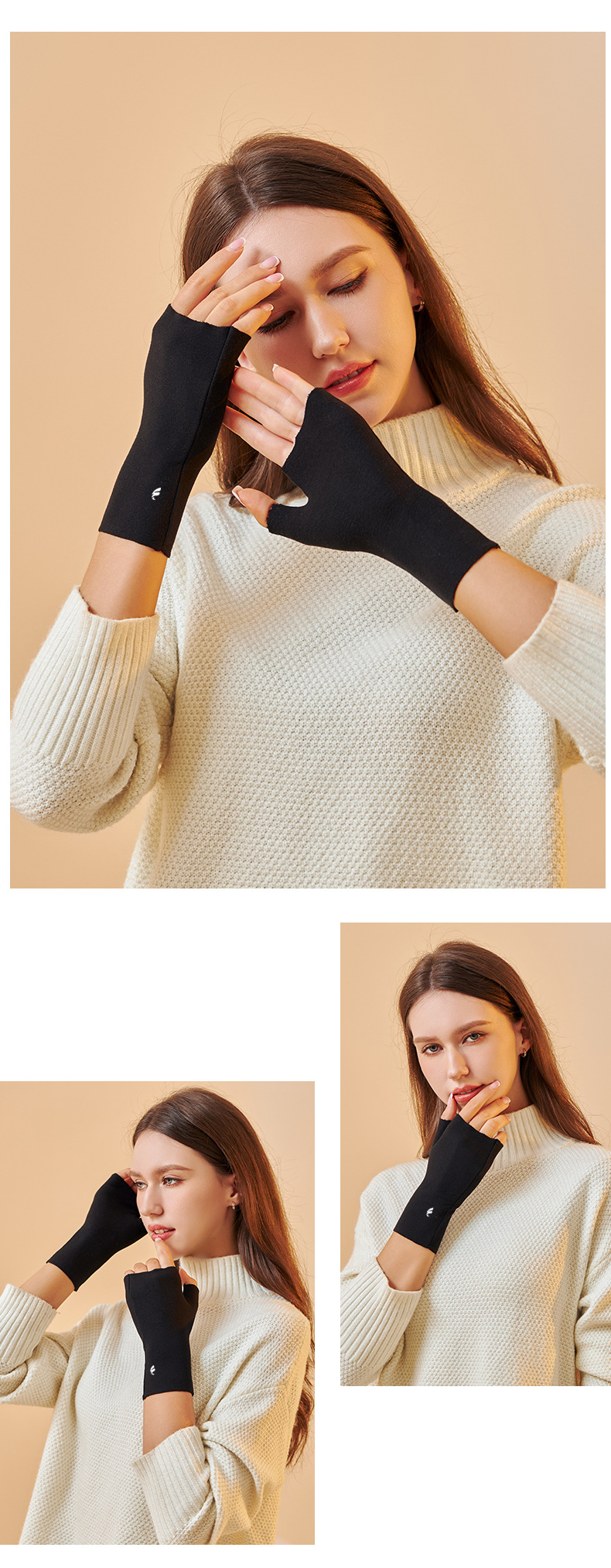 • 스킨 컬러 켈러 벨벳 라이트 럭셔리 반 손가락 장갑